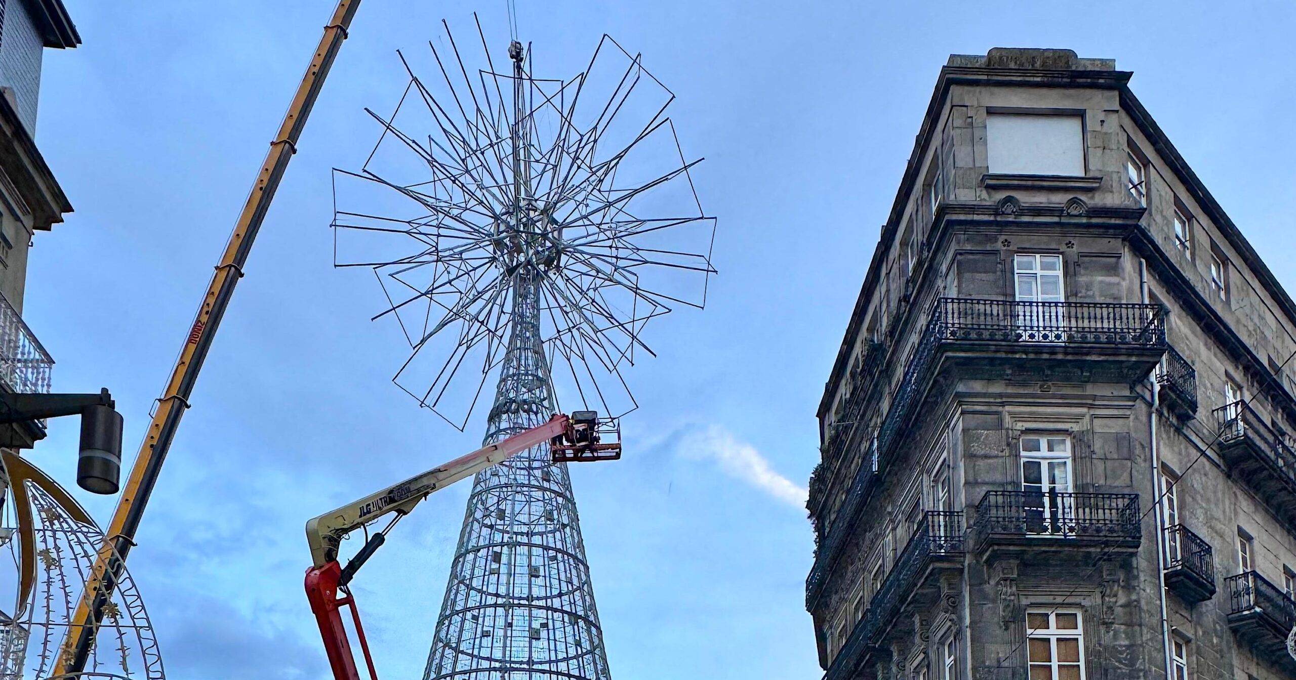 Se desconoce aún cuándo apretará el alcalde el botón que ilumine Vigo de color. Mediados de noviembre es lo que dice la tradición, pero la decisión final no ha sido comunicada. Lo que es seguro es que el árbol, a falta de retoques y pruebas de luz, está casi listo para encabezar el listado de atracciones que tanto atraen a los apasionados de esta celebración.