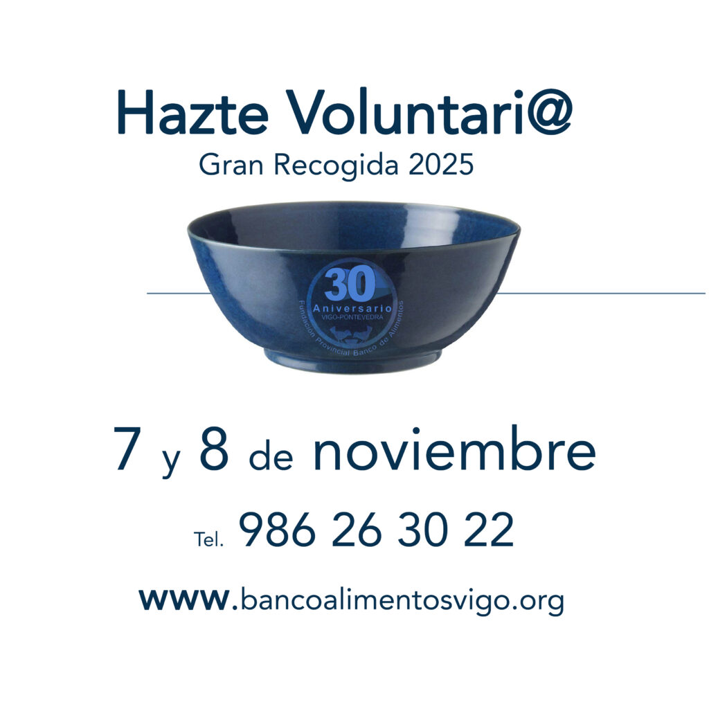 “Buscamos personas empáticas que no miren a otro lado ante la necesidad más cercana, que dispongan de cuatro horas ese fin de semana del 7 y 8 de noviembre y que tengan ganas de unirse a nuestra gran marea azul”, ha dicho el presidente y el secretario del Banco de Alimentos de Vigo, José Ramón Santamaría, quein ha recordado que, un año más, ya se encuentra operativa en la web una app informáticav ( https://granrecogidavigo.org ) donde fácilmente se puede elegir jornada, y turno. También se puede llamar al 986 263022.