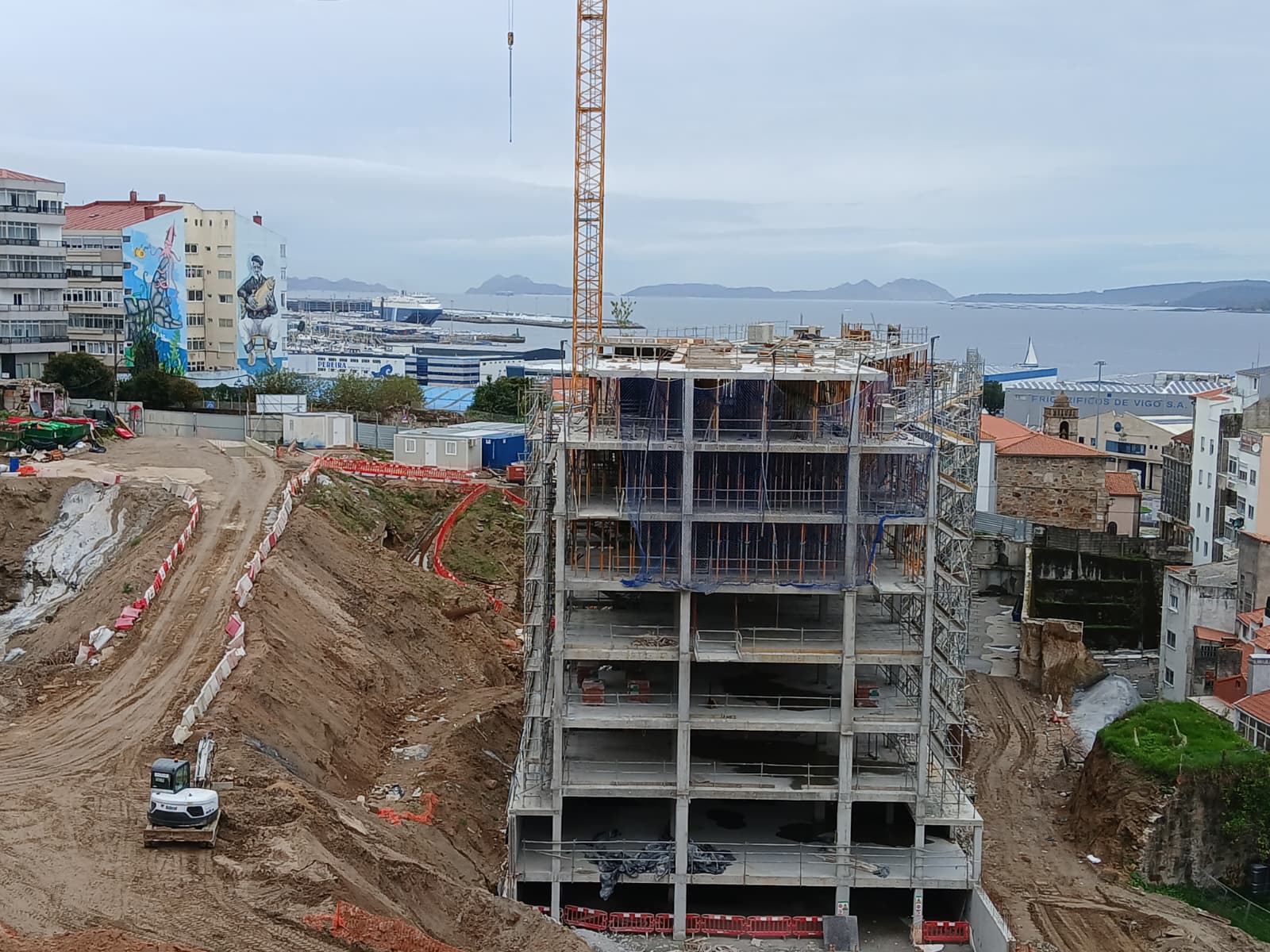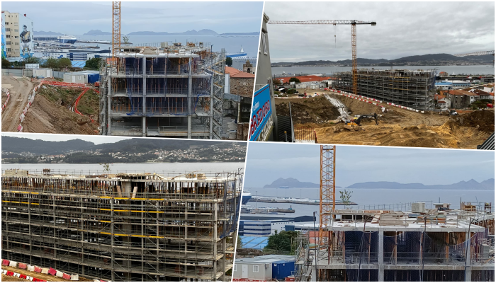 En apenas unos meses, el edificio Ardora se ha levantado ante la mirada de los vigueses. Este inmueble se encuentra en la zona más baja de la parcela, lindando prácticamente con el ámbito de O Berbés. Tras él, le seguirán los inmuebles Lúa y Estrela, de forma escalonada, y para completar las 298 viviendas proyectadas, 34 más que las planteadas inicialmente tras el visto bueno dado por Urbanismo el pasado mes de febrero a los cambios de edificabilidad de cada uno de los tres edificios que se levantarán en el ámbito.