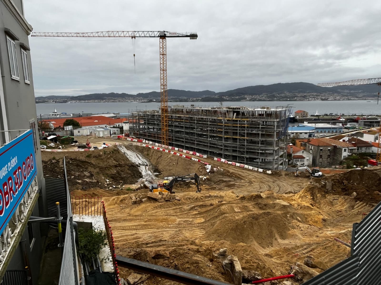 El Barrio do Cura ha entrado esta semana en una nueva fase de desarrollo. La construcción del primero de los tres grandes edificios, el Ardora, que se levantarán bajo el Paseo de Alfonso XII alcanzó su última planta. Un árbol en lo más alto de la estructura así lo atestigua desde este 24 de octubre de 2026. Este primer hito permite observar cuál será la altura final del inmueble. De esta forma también cómo serán las vistas a la Ría de Vigo.
