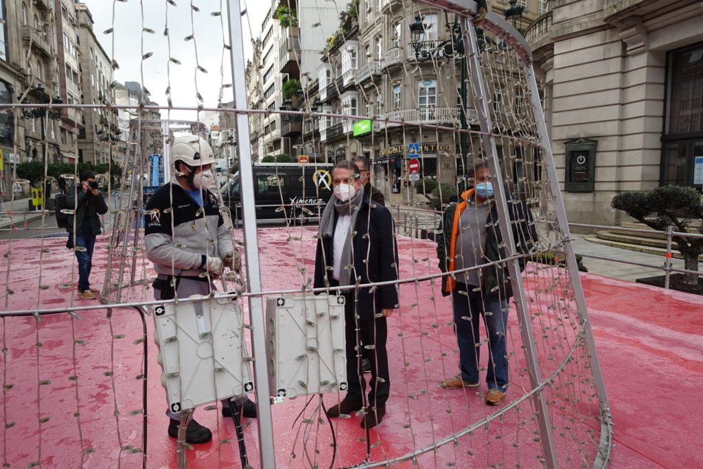 «Iniciamos el montaje porque estas Navidades, más que nunca, tienen que ser las de la ilusión de los niños y las niñas, son unas Navidades para ellos, es una etapa muy dura para ellos, para los más pequeños, nos vamos a volcar», señaló el alcalde de Vigo, Abel Caballero.