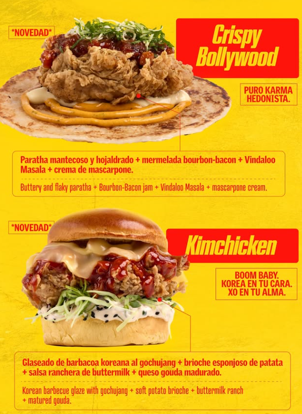 La segunda propuesta pasa por Kimchicken, el más puro ‘XO’ que llegará al alma de quien lo pruebe con toques de Corea. Delicia culinaria creada con glaseado de barbacoa coreana al ‘gochujang’ con brioche esponjoso de patata, salsa ranchera de ‘buttermilk’ y queso gouda madurado. Será todo un ‘boom baby’, como ellos mismos trasladan.