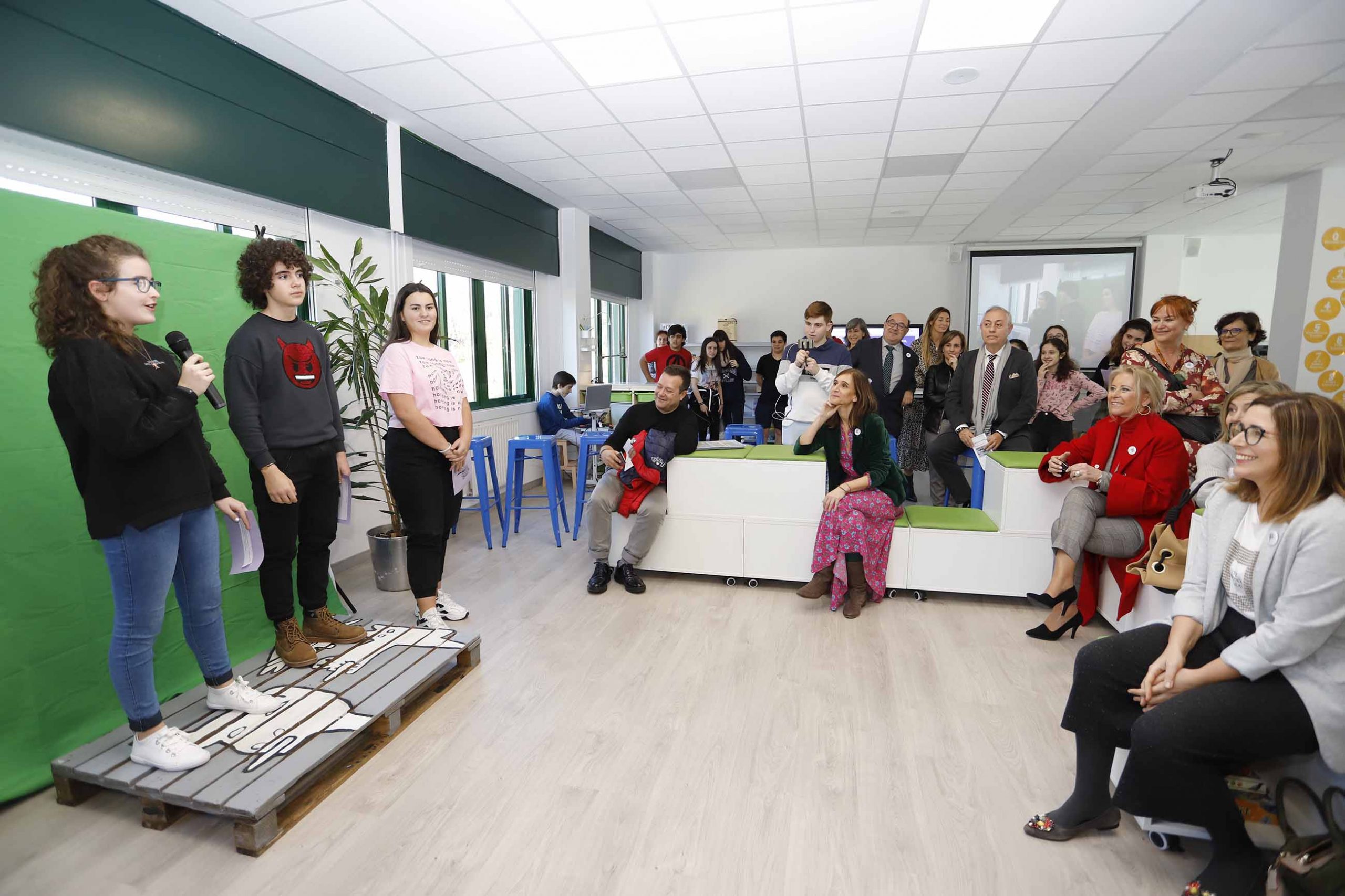 La conselleira de Educación participó en la inauguración de esta biblioteca renovada, que cuenta ahora con espacios diferenciados para leer y escribir, para trabajar e investigar, para hablar y escuchar, así como un espacio creativo. El trabajo colaborativo, la participación activa del alumnado, la lectura y la educación en materia de información y medios de comunicación es una de las señales de identidad de esta biblioteca.