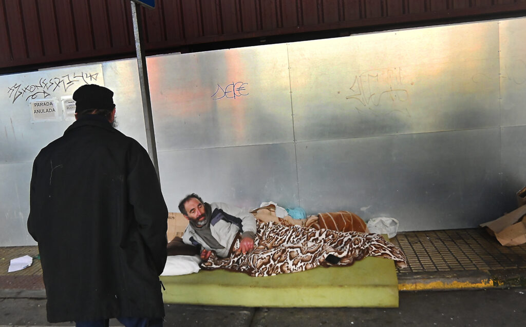 El dispositivo municipal del frío, alabado en comunicados oficiales, no garantiza asistencia efectiva. Según David y Jessica, Cruz Roja y otras organizaciones aparecen de forma irregular, a veces con semanas de ausencia, sin asegurar alimentos, mantas o acompañamiento. “No es algo que puedas contar como cierto. Vienen cuando les cuadra”, afirma David.