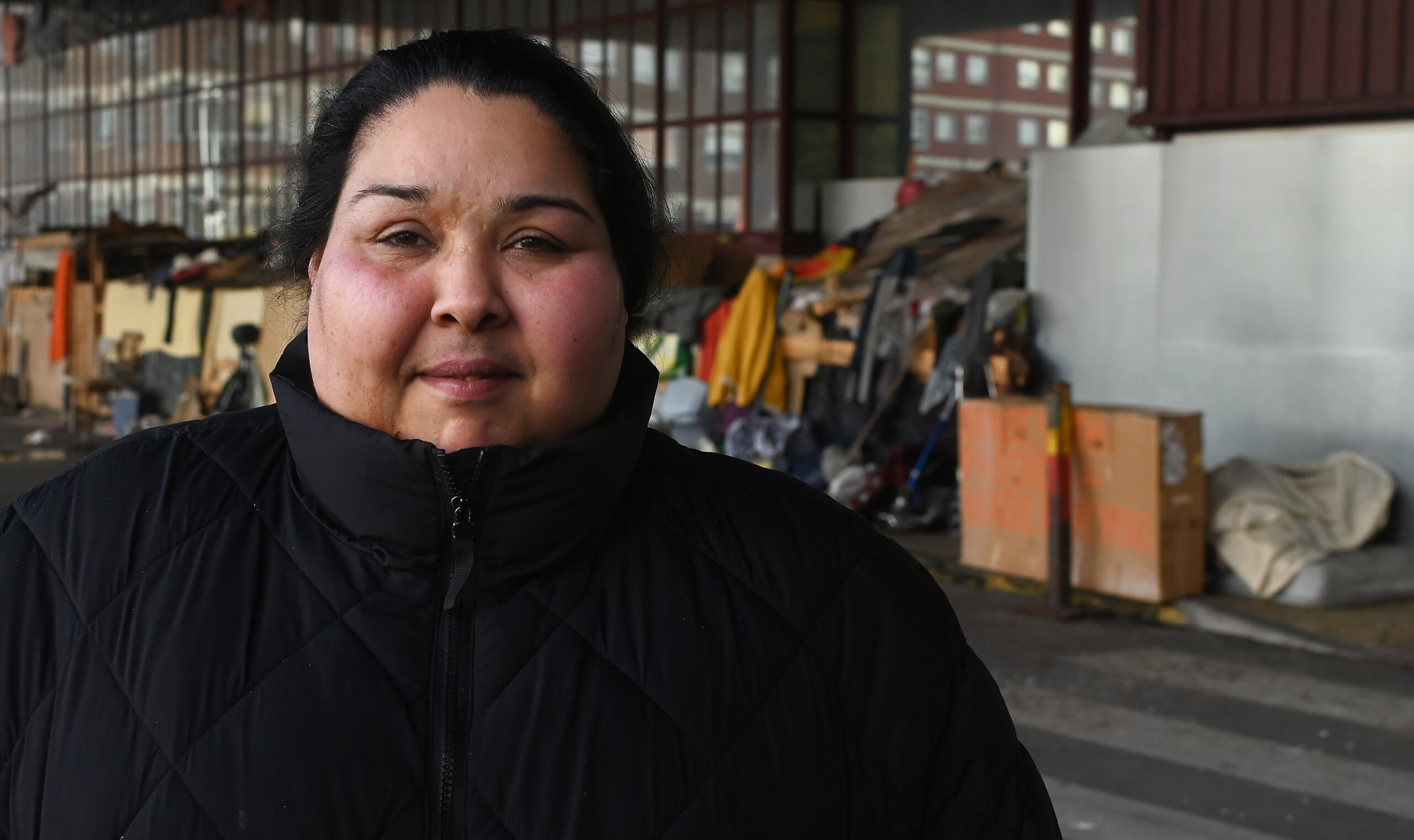 “Es muy duro porque se pasa muy mal con el frío y la lluvia. Aquí se pasa mucha, mucha, necesidad”, dice Jessica, que tiene 32 años y conoce esta realidad demasiado bien. Estuvo dos años viviendo entre cartones y madera, escondida en alguno de los precarios refugios levantados entre palés, somieres viejos y sacos de dormir. Ni tenía ingresos ni respaldo, hasta que una trabajadora social la ayudó a regularizar sus papeles y a tramitar la solicitud de alguna ayuda. Hoy, aunque sigue sin tener casi nada, viene cuanto puede a la estación cargada con café caliente o comida para sus antiguos compañeros de faena.