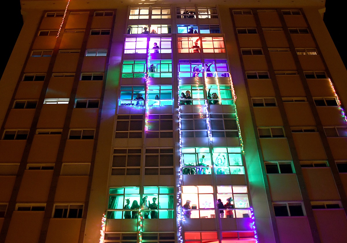 Música, poesía, cuentos, canciones, conciertos e incluso bingos se han hecho desde las ventanas. Pero en el barrio vigués de Coia han ido más allá, para felicidad del mismísimo Abel Caballero. En la calle Padre Seixas, justo al lado del parque de A Bouza, han sacado de nuevo las luces de Navidad. «El alcalde estaría orgulloso, es el mejor edificio del mundo», bromeaban.