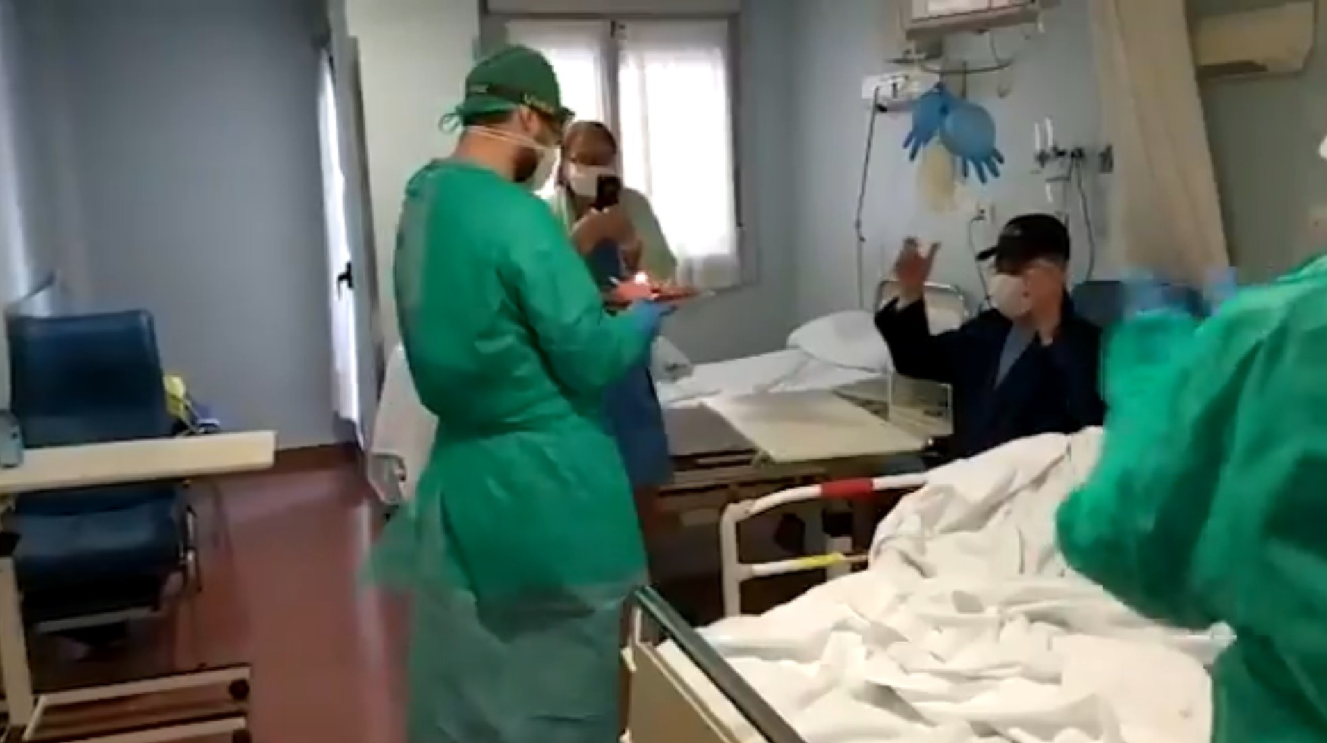 José Luis es uno de los 11 pacientes ingresados en el Hospital Povisa de Vigo con coronavirus. Este viernes era una día especial, puesto que cumplía 74 años, y el personal sanitario le dio una sorpresa.