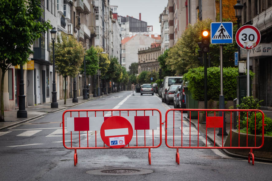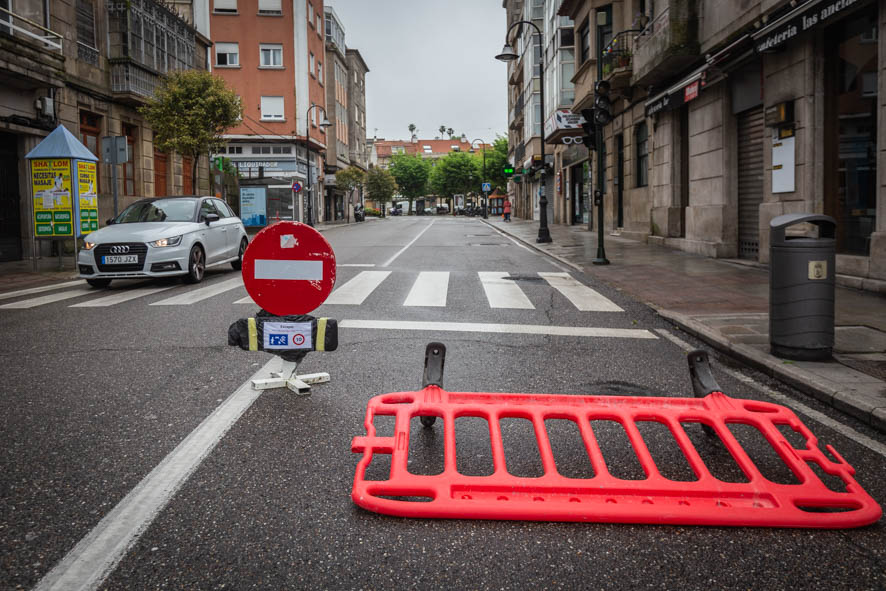Podían salir los niños menores de 14 años a la calle, acompañados por un progenitor por supuesto, pero pocos fueron los que se animaron a asomarse en Vigo. Las 34 calles peatonalizadas por primera vez este Primero de Mayo no fueron suficientes para convencer a los vigueses. Y es el que tiempo, con cielos cubiertos todo el día y la lluvia persistente, dejó de nuevo una ciudad desierta.