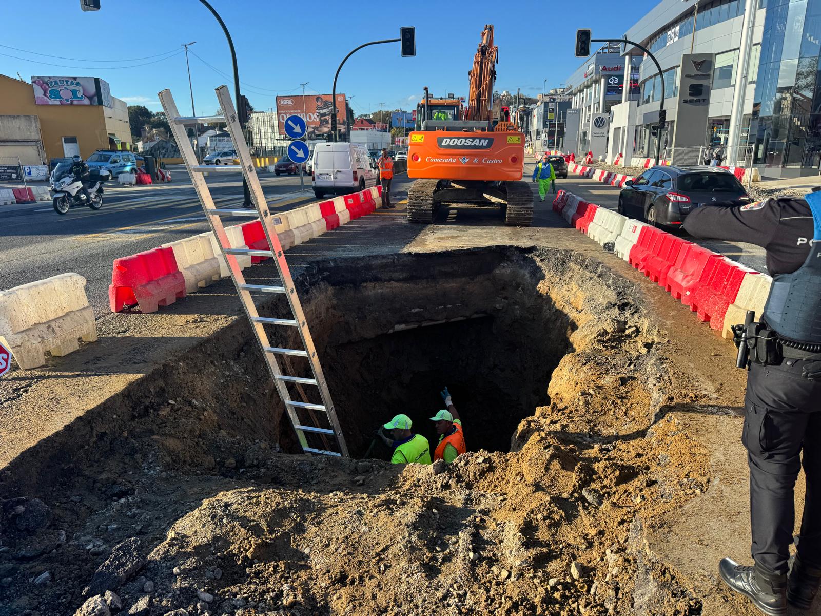 «Pues en estos momentos la obra ya prevé todo ese cambio. Será reparado como muy tarde mañana y seguirá el funcionamiento normal en la obra», ha dicho Caballero, quien ha insistido en el cambio radical que sufrirá la Avenida de Madrid tanto por arriba, en la zona que ven todos los vigueses, como debajo, en las que queda oculta bajo el asfalto.