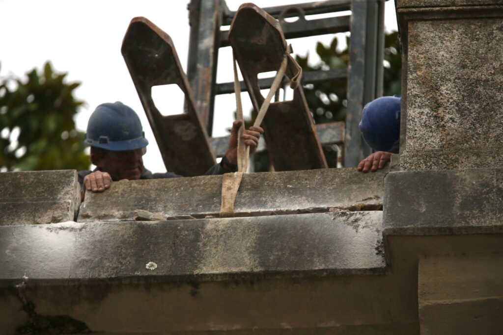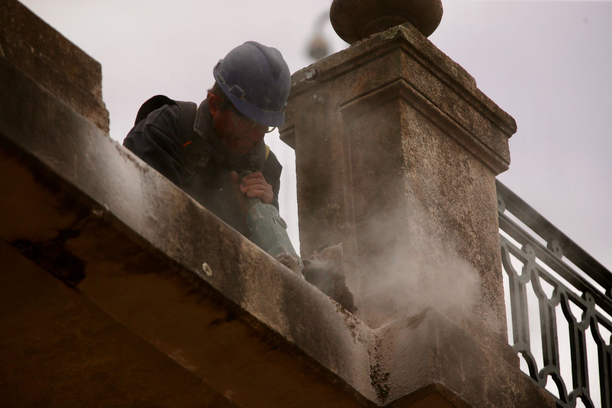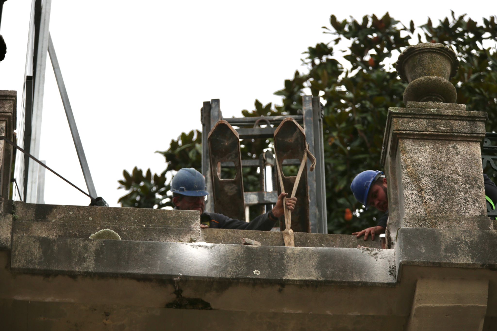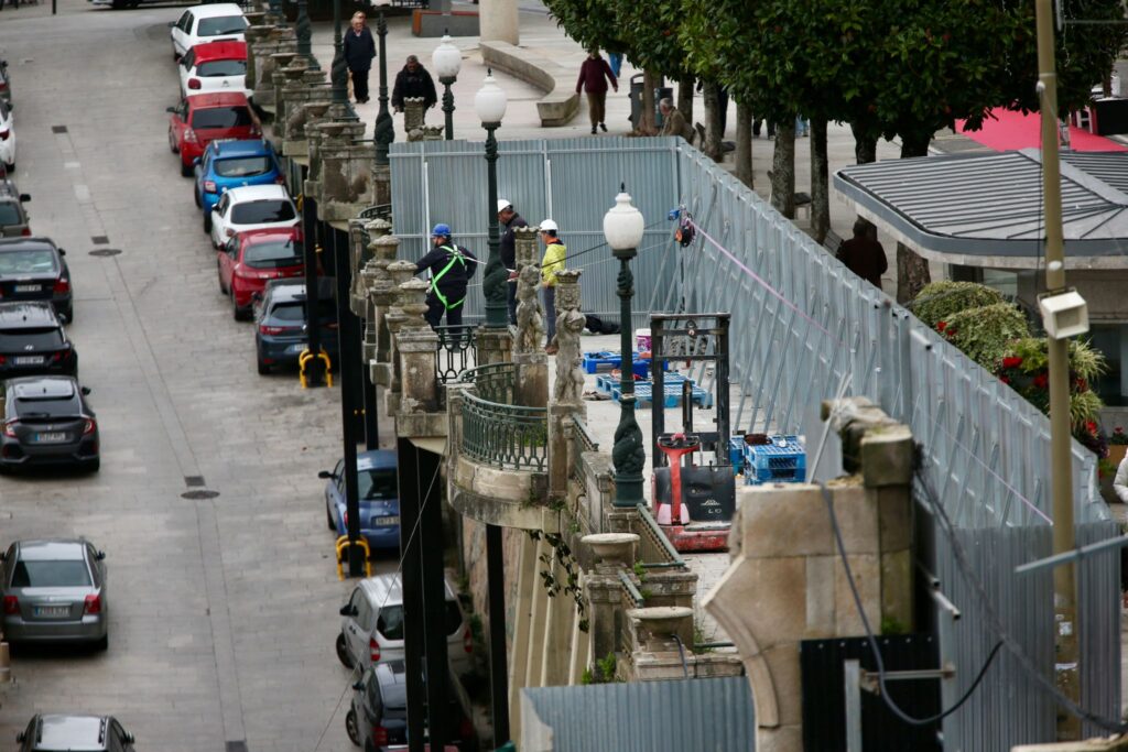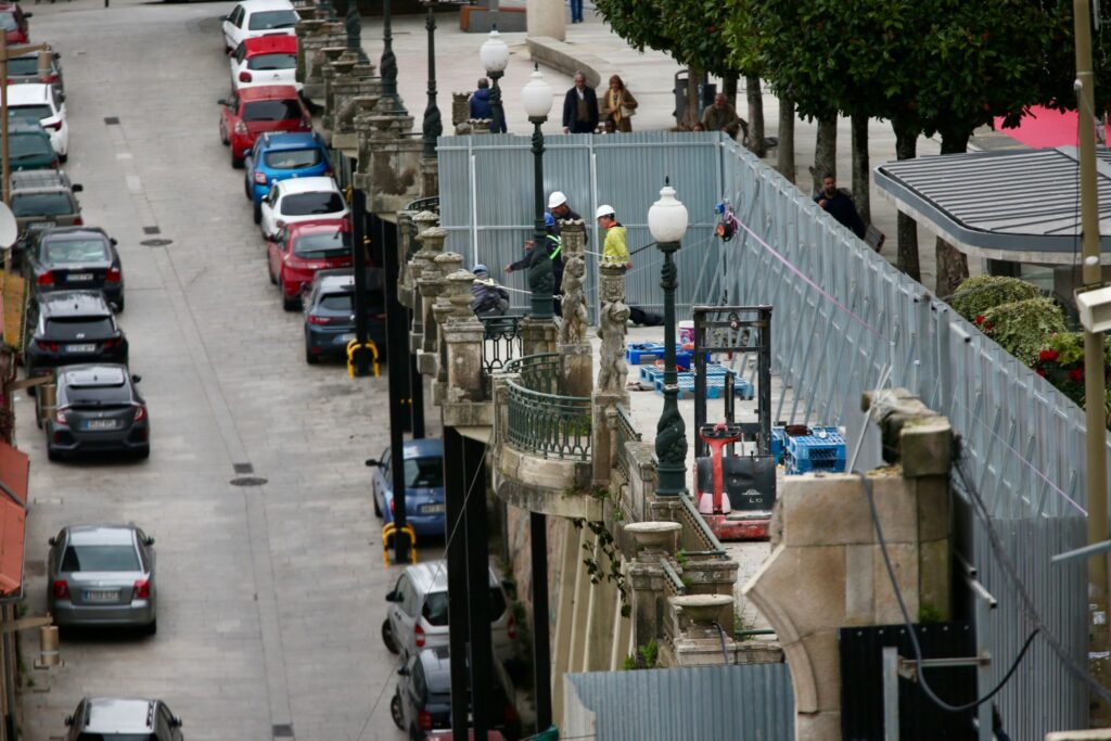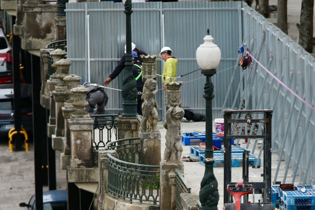Si hace unas semanas, tal y como avanzó este periódico, operarios de la UTE responsable de las obras de Barrio de Cura -conformada por las constructoras DFR y San José- comenzaron con los trabajos previos y a aplicar goma laca a la piedra para marcar y desmontar, y tras pasar después a montar un vallado sobre la zona de actuación, este viernes ya se ha iniciado el desarme de los primeros elementos de la centenaria balaustrada, que data del año 1875 y que forma parte del BIC Casco Vello de Vigo, declarado en el año 2006.