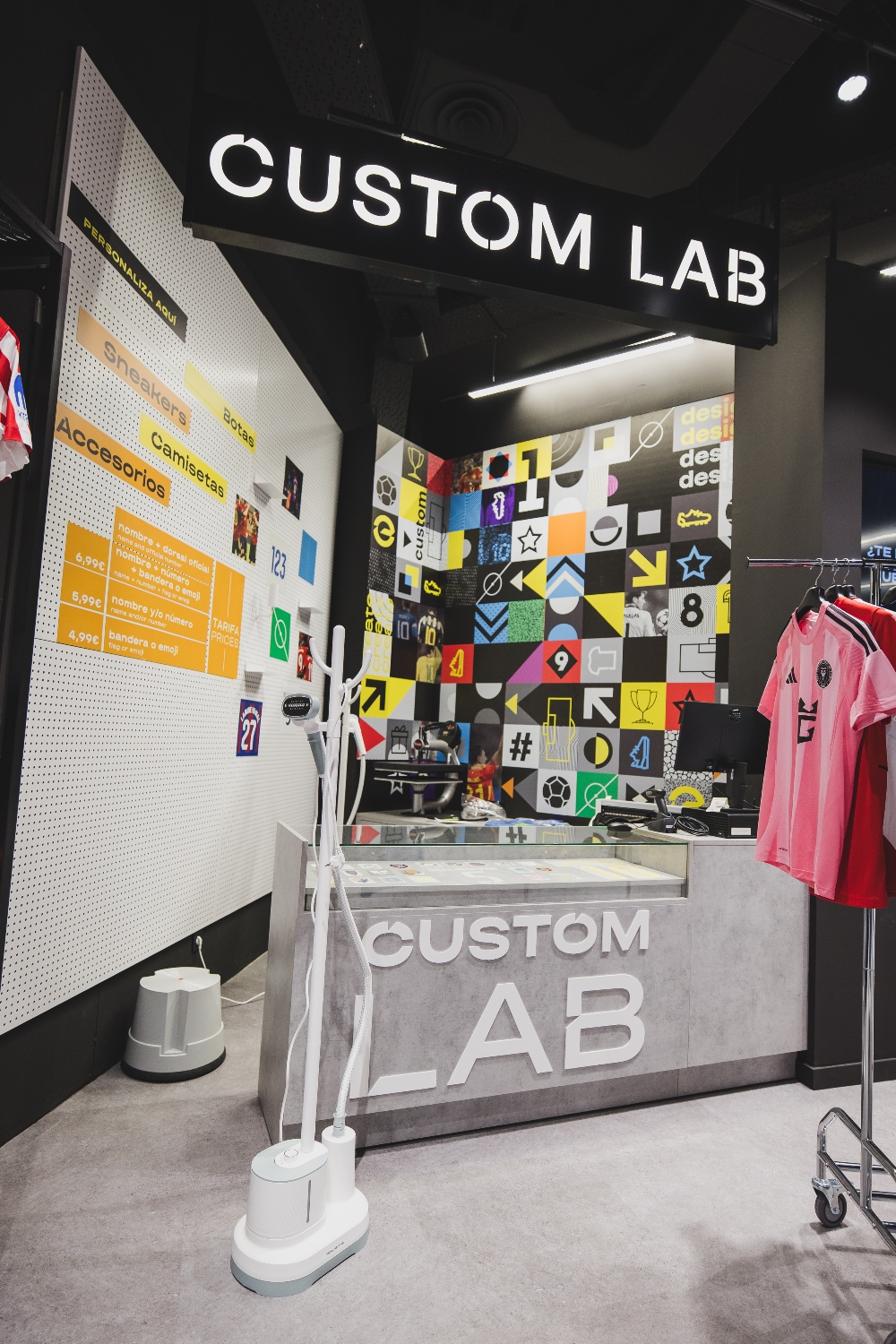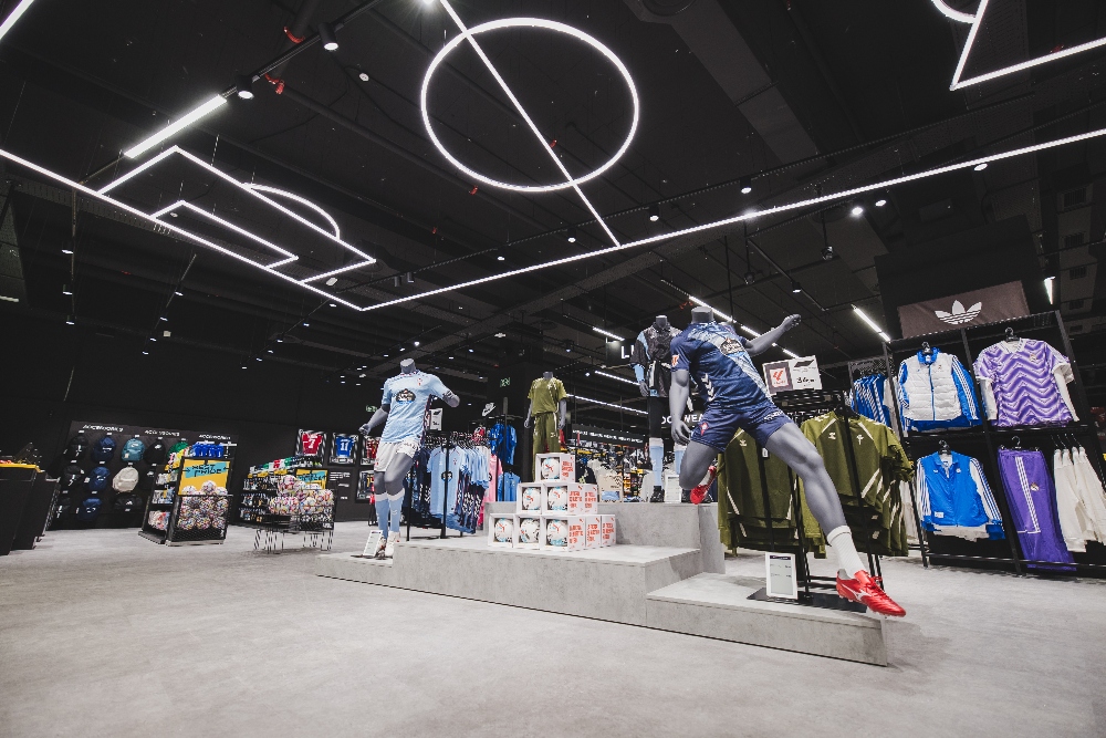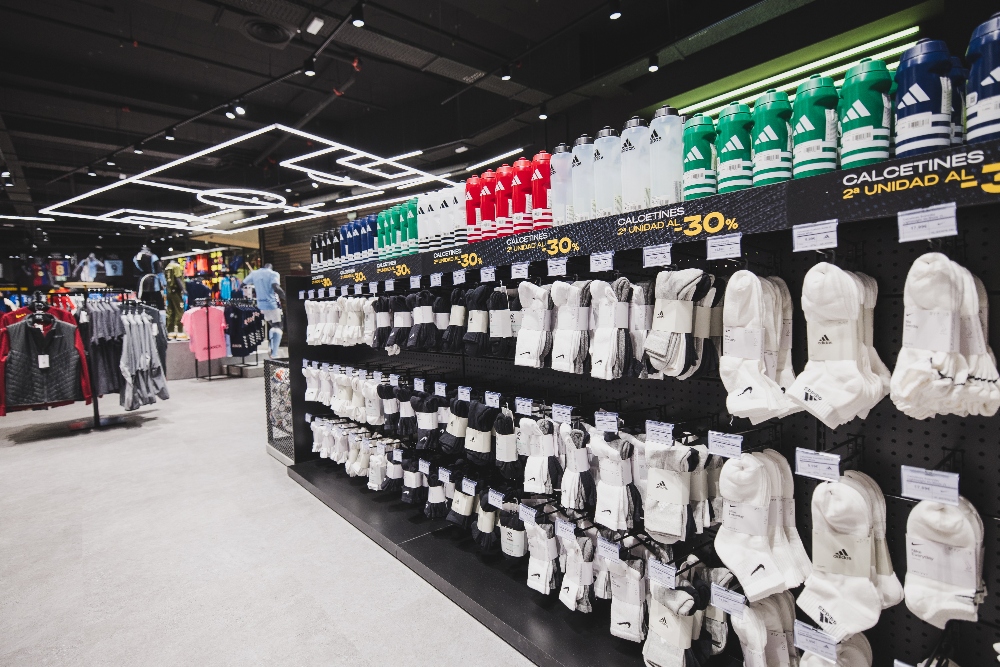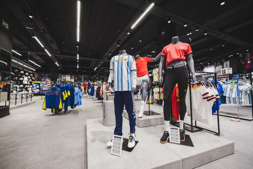 Entre las zonas destacadas figura el Custom Lab, el laboratorio de personalización donde los clientes podrán estampar nombres, números, parches oficiales o incluso diseñar detalles únicos en botas, guantes y camisetas. La tienda incorpora también kioskos digitales para consultar disponibilidad de producto en tiempo real y pantallas con contenido exclusivo de las principales marcas y promociones.