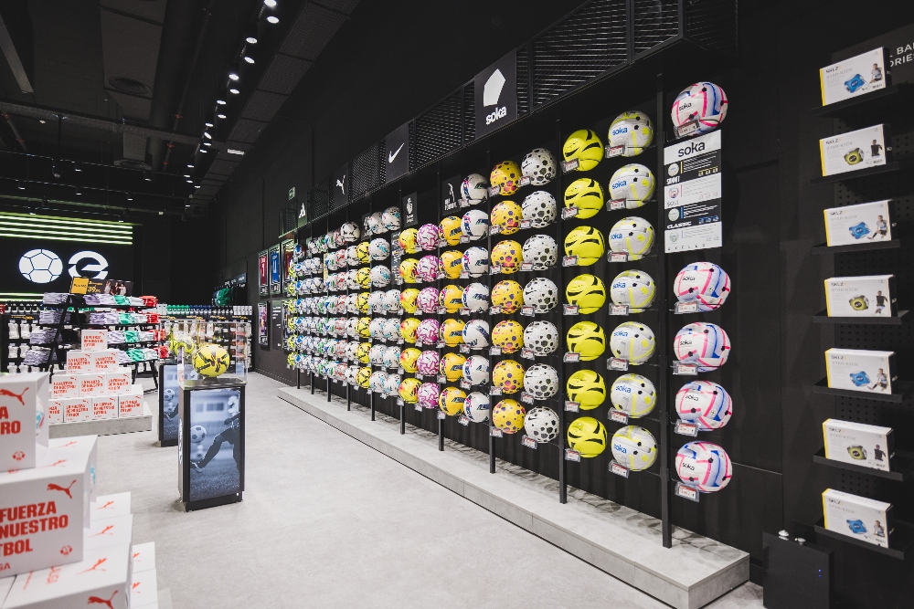 Un espacio de casi 800 metros cuadrados que se posiciona como el más amplio y completo de la ciudad dedicado exclusivamente a este deporte. La tienda ofrece un amplio catálogo que incluye botas de las principales marcas, equipaciones oficiales de clubes españoles y europeos, guantes de portero, balones, espinilleras, accesorios técnicos y una línea de productos lifestyle vinculada al fútbol. Todo ello pensado para cubrir desde las necesidades del jugador amateur hasta las del profesional o el coleccionista.