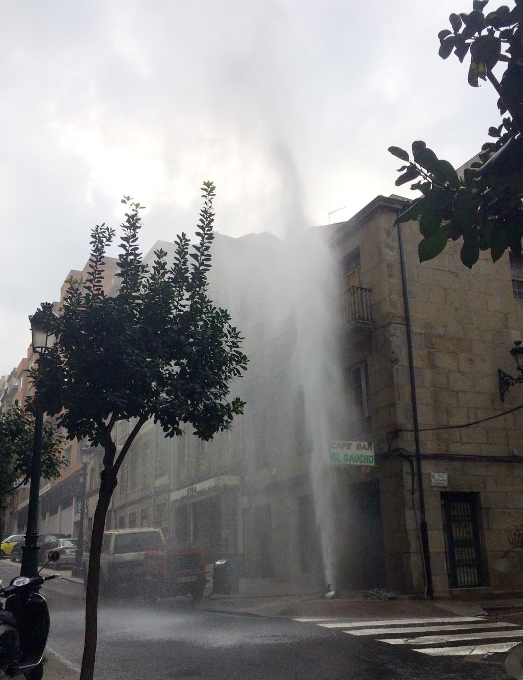 Una avería en la red de suministro provoca una fuga en la calle Hernán Cortes y deja a los vecinos sin agua