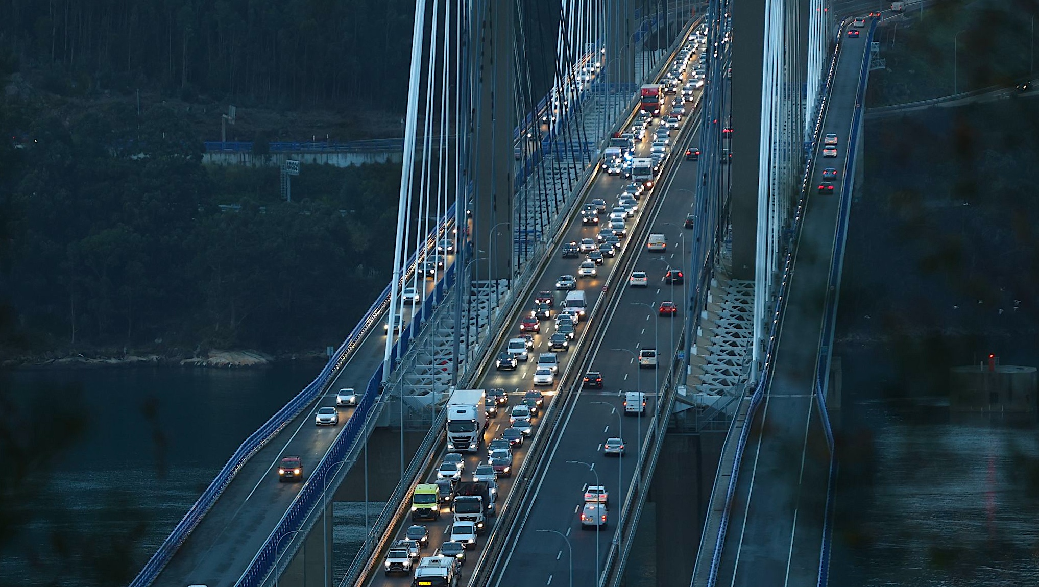 Atasco de los importantes en la tarde de este miércoles en la llegada a Vigo por el Puente de Rande. ¿La causa? La avería sufrida por un camión, lo que ha causado un muy importante tapón.