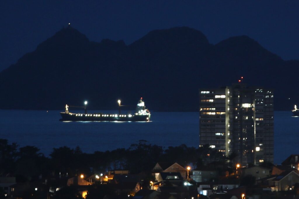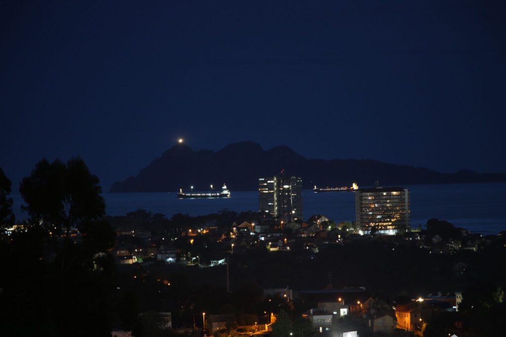 La ría de Vigo ha vuelto a convertise en las últimas horas en un improvisado refugio para unos cuantos buques de alto tonelaje que han decidido fondear al abrigo de las Islas Cíes a la espera de que amaine lo que se avecina.