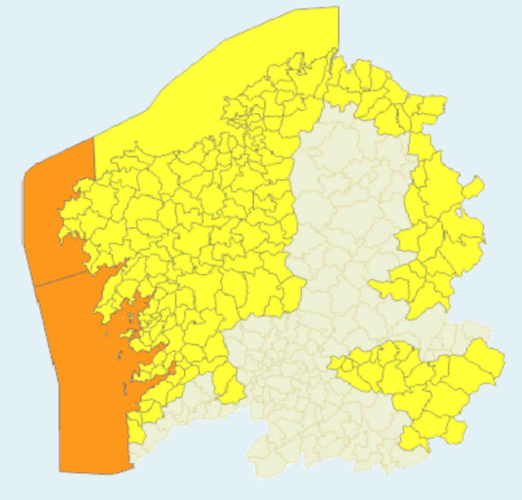 También la Agencia Estatal de Meteorología (Aemet) ha decretado aviso amarillo para Galicia este martes, con especial impacto en nuestra provincia y en uestra cvosta.