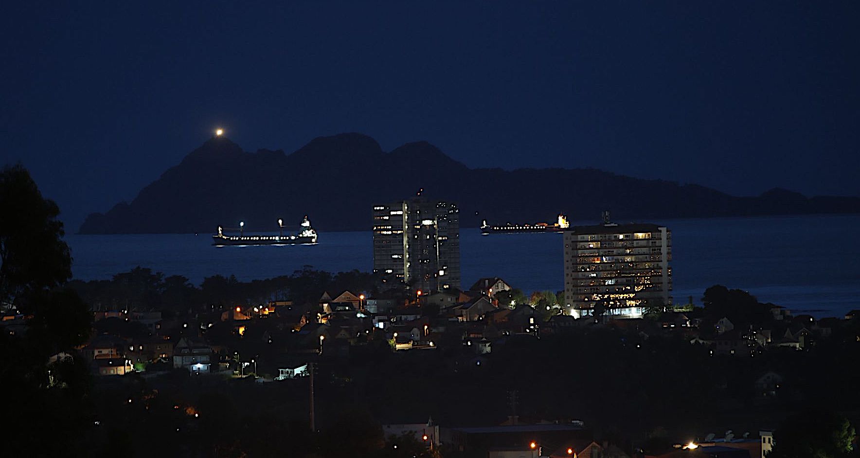 Esta situación se prolongará también durante el miércoles 5 de noviembre, especialmente durante la madrugada. En estas condiciones, extraña poco que los grandes barcos, cuyo mucho tonelaje no les libra del azote del temporal, hayan visto como suelen un refugio en la ría de Vigo, donde las condiciones son siempre algo más benignas gracias al parapeto que supone la presencia de las Cíes en la boca de la ría.