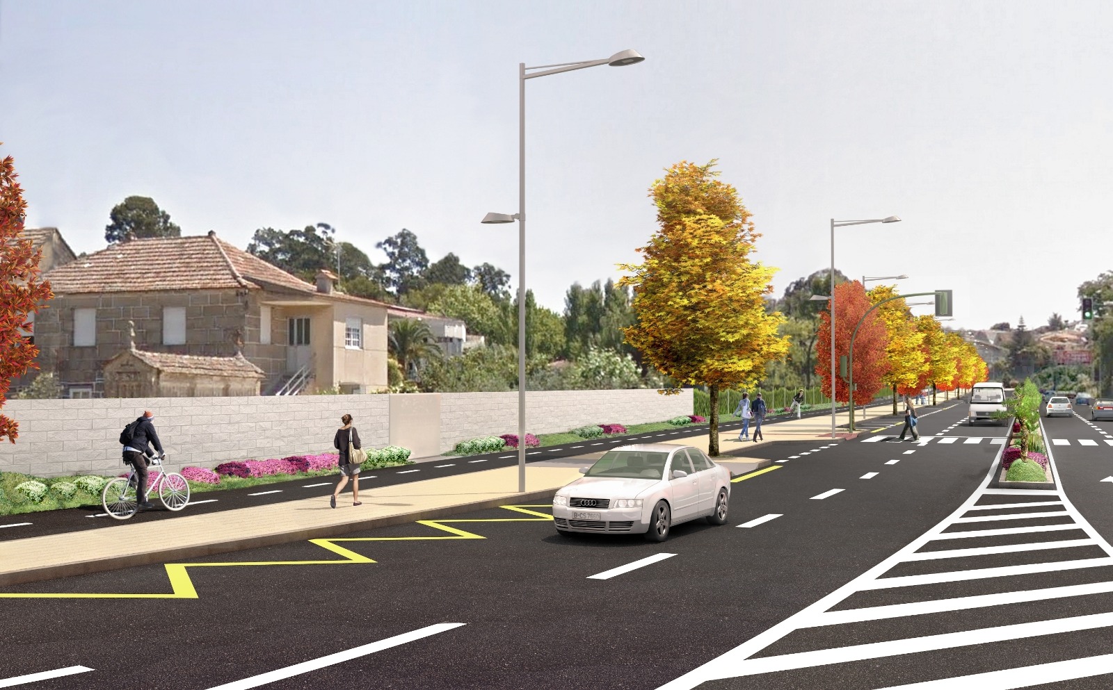 Además de la creación de esta “gran avenida peatonal”, como la ha definido Abel Caballero, entre los cambios figura un aumento de la seguridad en dos tramos: el que discurre por la Travesía de Vigo y el que va desde la Praza de América a la Praza da Independencia (y viceversa). En ambos casos se ha descartado que vehículos y ciclistas compartan un ‘ciclocarril’. Por el contrario, se optará por emular el trazado del resto de calles, con una senda “separada” que garantice al cien por cien la seguridad de ciclistas y automóviles.