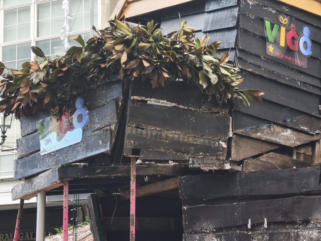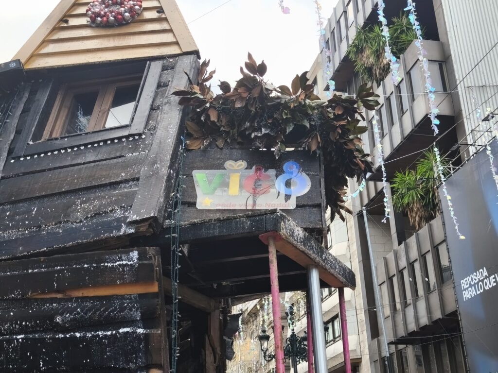 La casa de Papá Noel, una de las atracciones navideñas de Vigo, se encuentra cerrada y apuntalada este martes tras haber sido víctima de un atropello que la ha dejado temporalmente fuera de servicio.