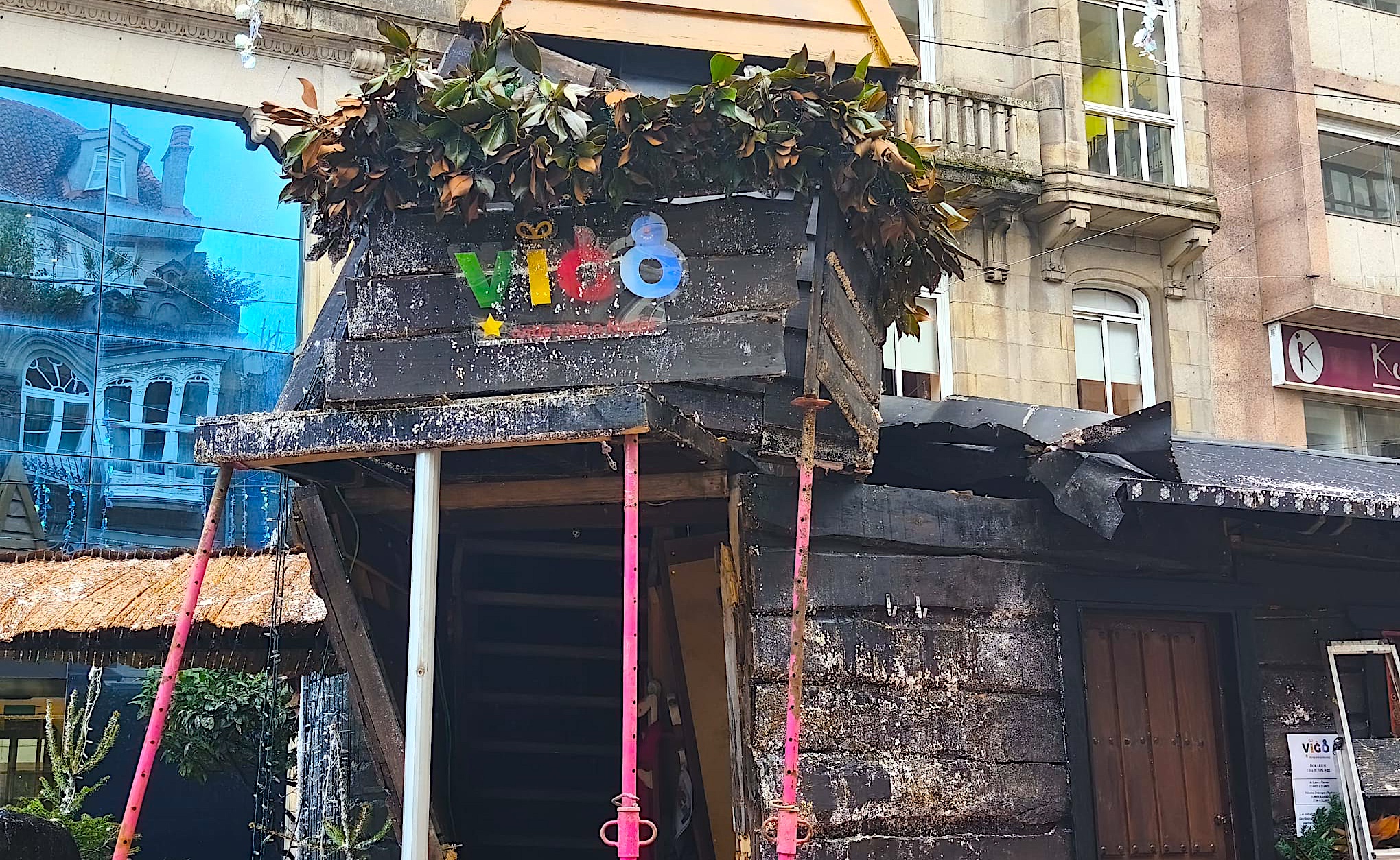 La casa de Papá Noel, una de las atracciones navideñas de Vigo, se encuentra cerrada y apuntalada este martes tras haber sido víctima de un atropello que la ha dejado temporalmente fuera de servicio.