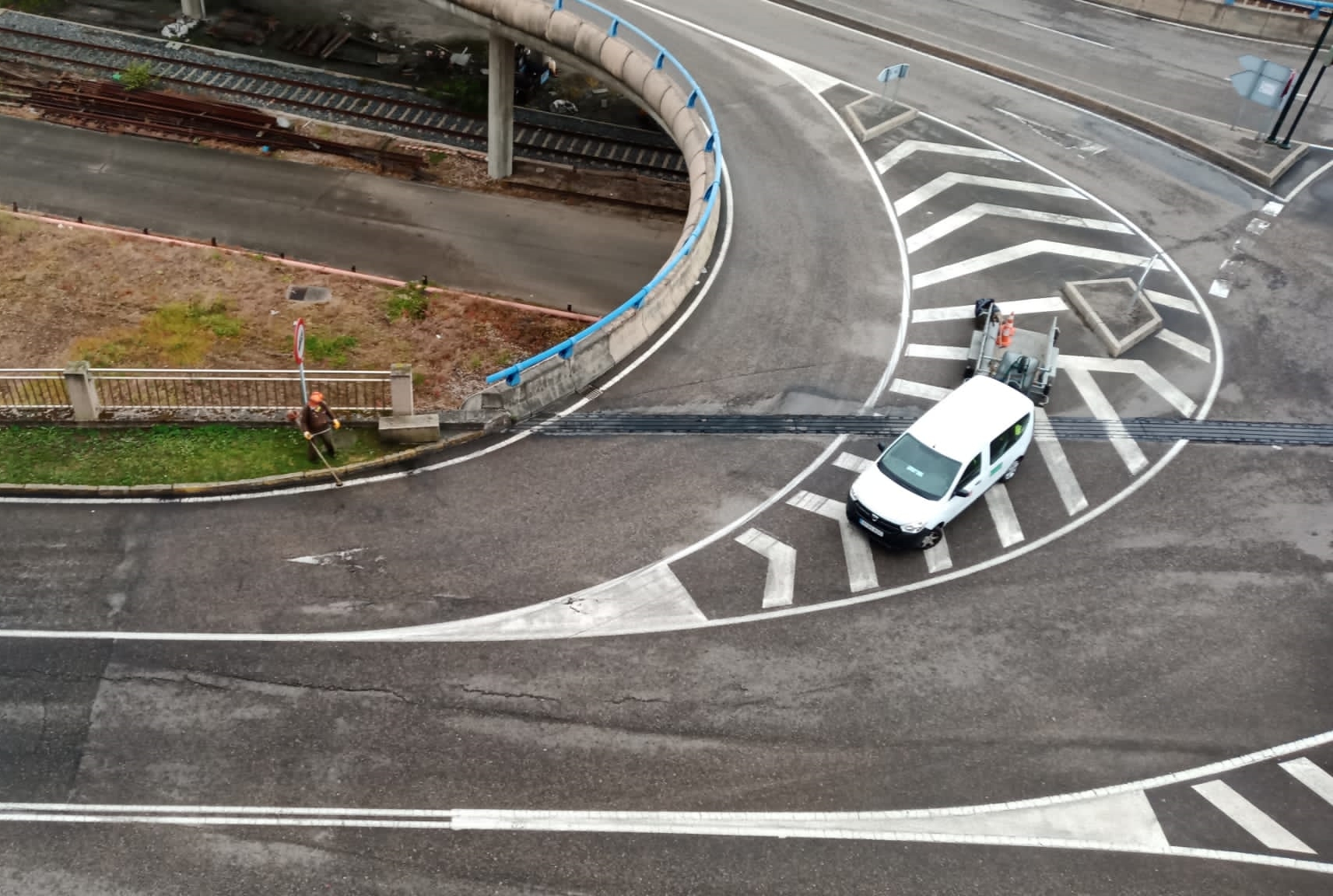 Un operario de Parques y Jardines, desbrozando este viernes en Vigo.