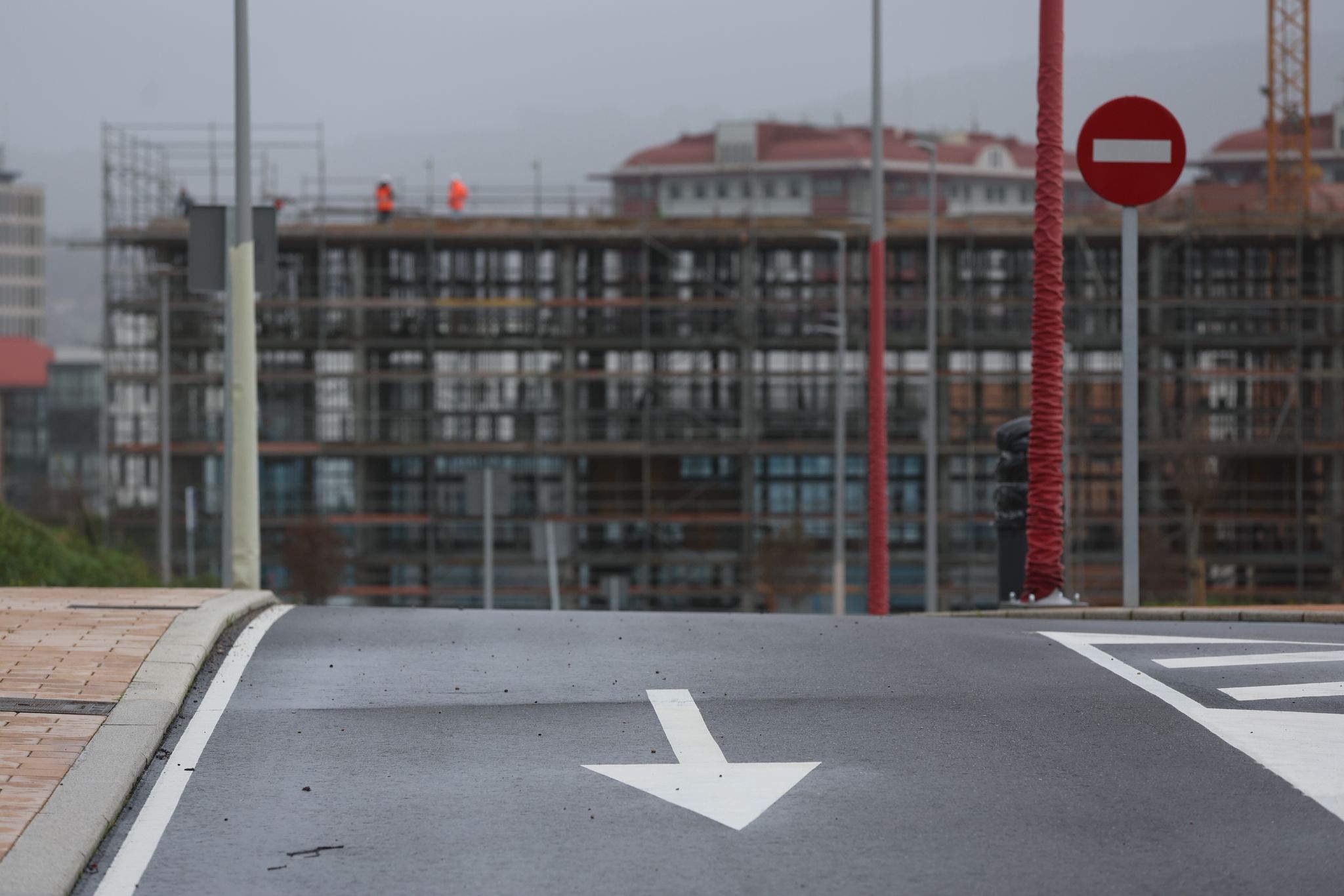 Con todo, la visión completamente opuesta se vive en la zona más cercana al centro de salud de Navia, donde ya se vislumbra la primera torre de estos nuevos edificios del polígono.