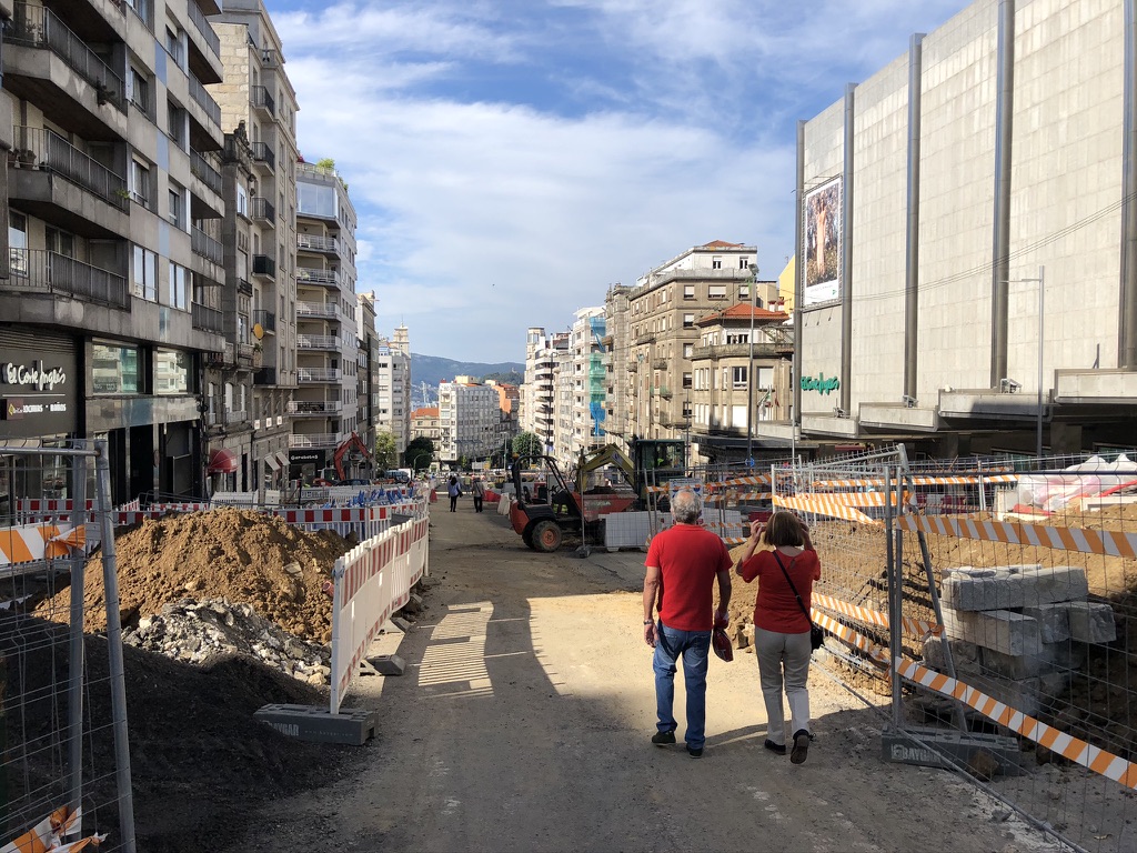 Las obras de la Gran Vía inician esta semana una nueva fase. El Concello de Vigo espera recibir este martes los camiones que traerán las rampas mecánicas que instalará en el centro de la avenida para, a continuación, colocarlas y cambiar todavía más la fisonomía de esta importante arteria de la ciudad.