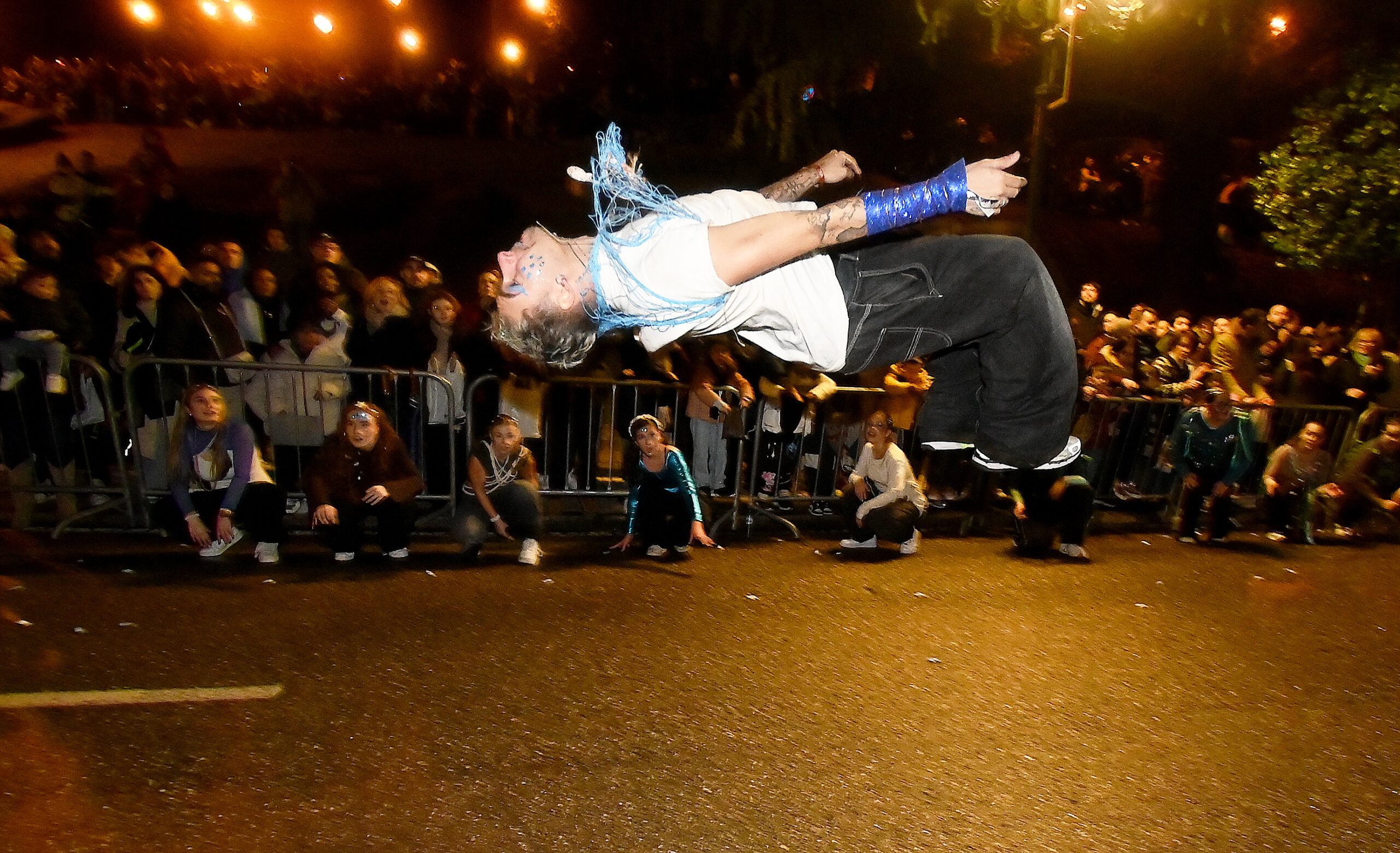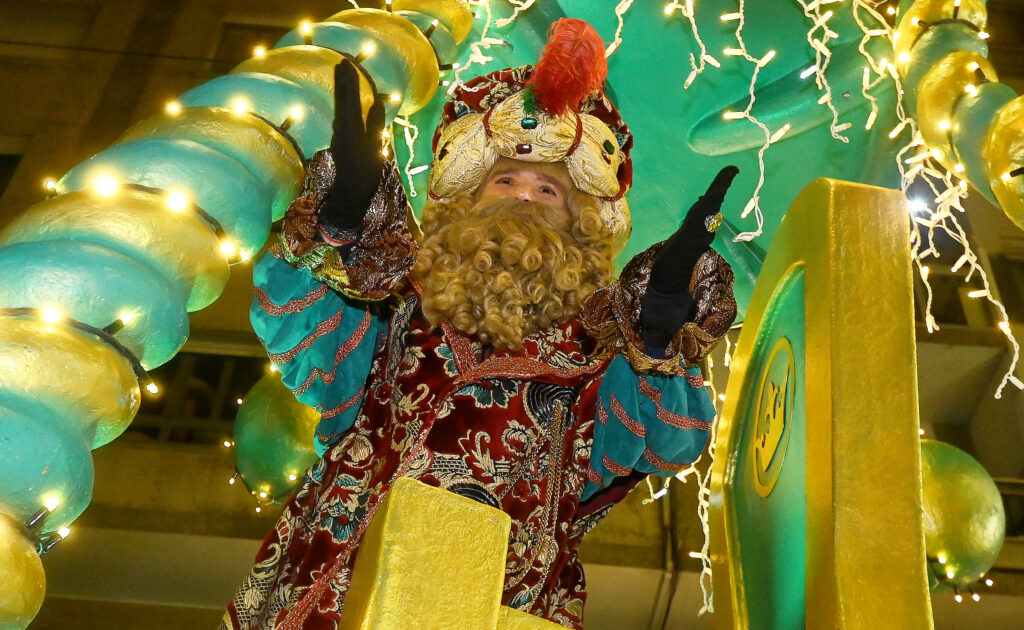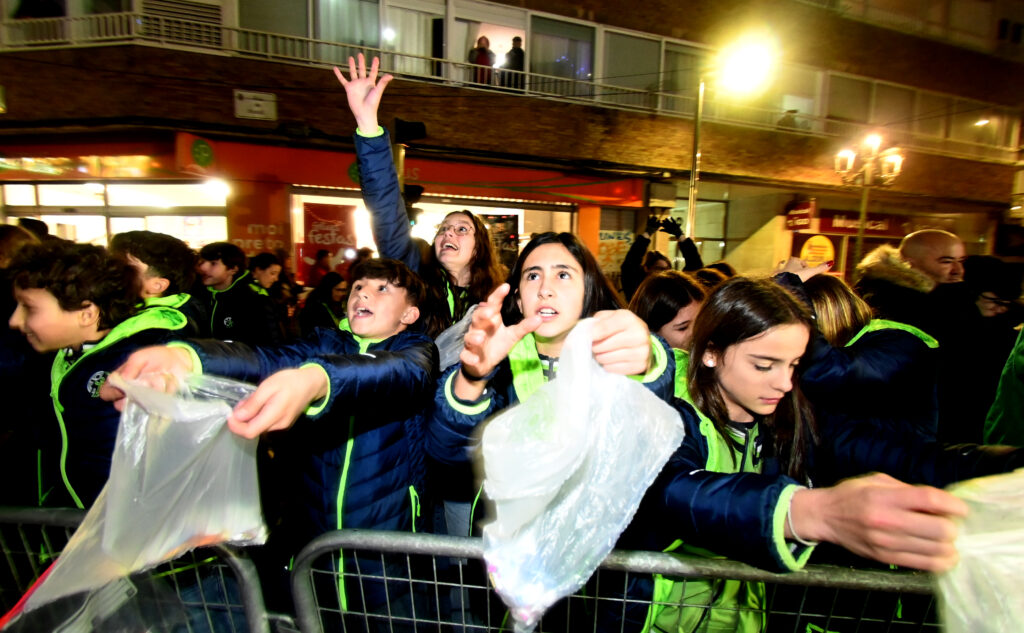 Si bien los charcos ocasionados por la lluvia obligó a medir la captura de caramelos, la compensación llegó en forma de energía y cercanía. La locura se desató con la aparición de los tres Reyes Magos. Lejos de la rigidez institucional, Melchor, Gaspar y Baltasar se contagiaron del espíritu festivo, saltando y danzando sobre sus tronos, compartiendo una vitalidad que se transmitió de inmediato a los más pequeños, mención especial al Rey Melchor que vivió su desfile derrochando energía y comunión con quienes se agolpaban en las aceras.
