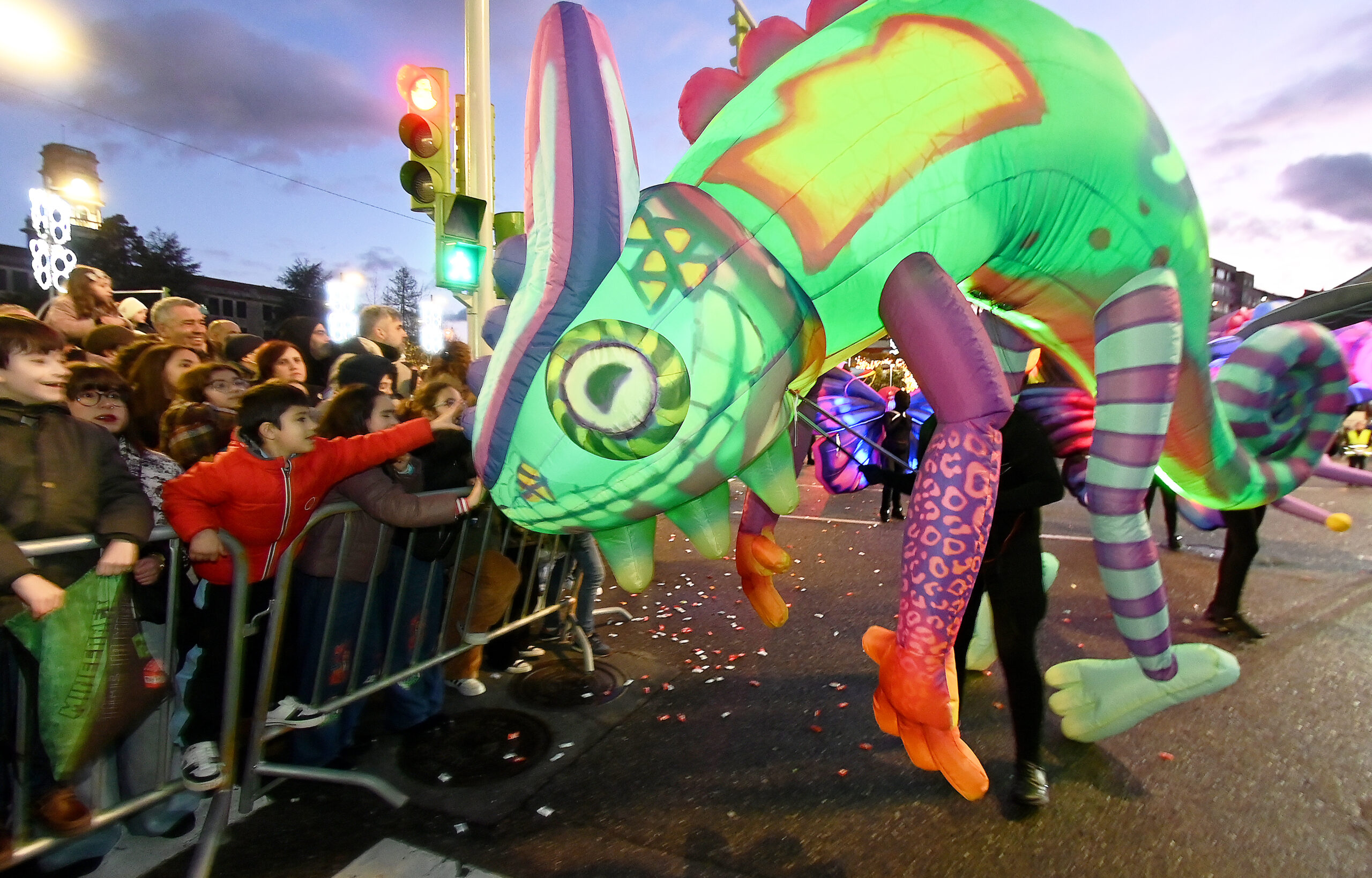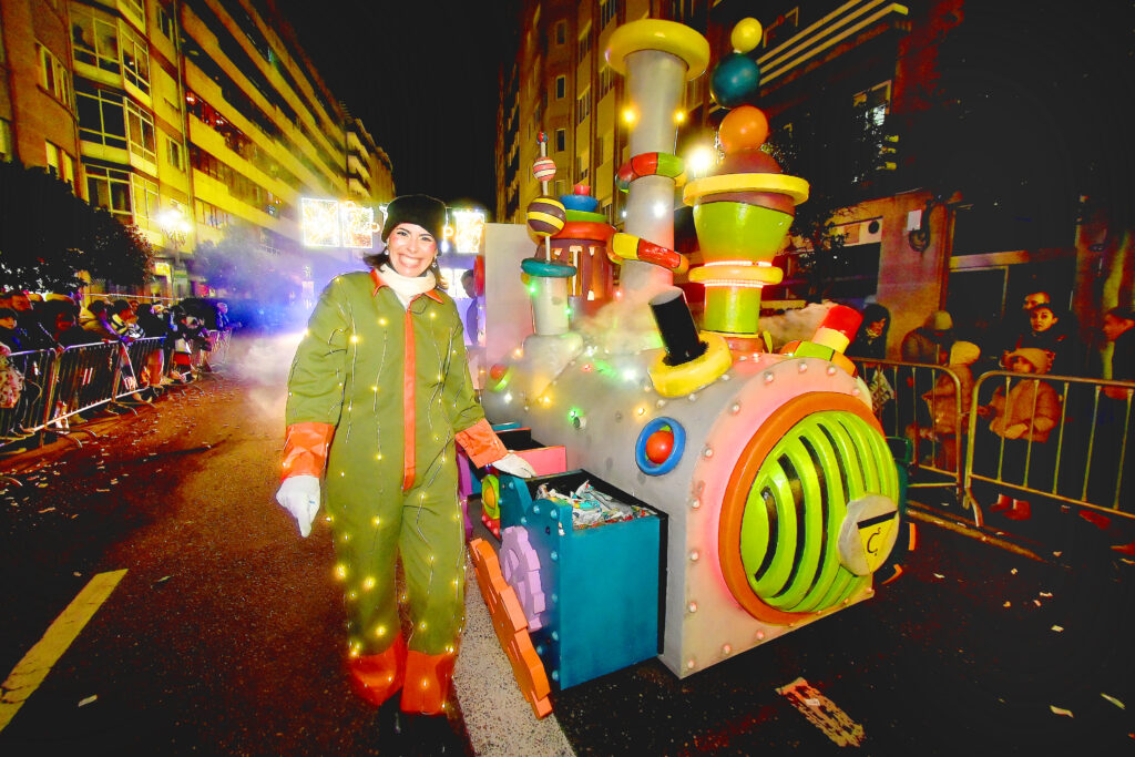 La cabalgata no olvidó su identidad marítima y urbana: ballenas y mariposas gigantes abandonaron simbólicamente la ría para nadar sobre el asfalto, mientras que históricos tranvías recorrían las calles en un guiño nostálgico que conectaba el pasado de Vigo con el futuro de sus ciudadanos más jóvenes.