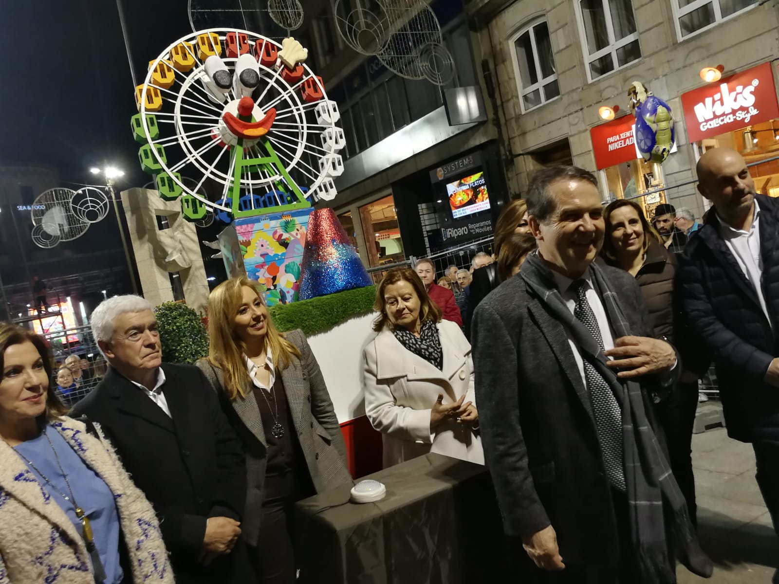 El alcalde de Vigo, Abel Caballero, y un buen número de concejales asistieron este viernes en la Porta do Sol a la entronización del Meco, la figura que representa el Carnaval vigués. En esta ocasión no estaba Feijóo ni el Hospital «Privado» Álvaro Cunqueiro, sino que era la famosa noria a la que se subieron miles de personas en Navidad.