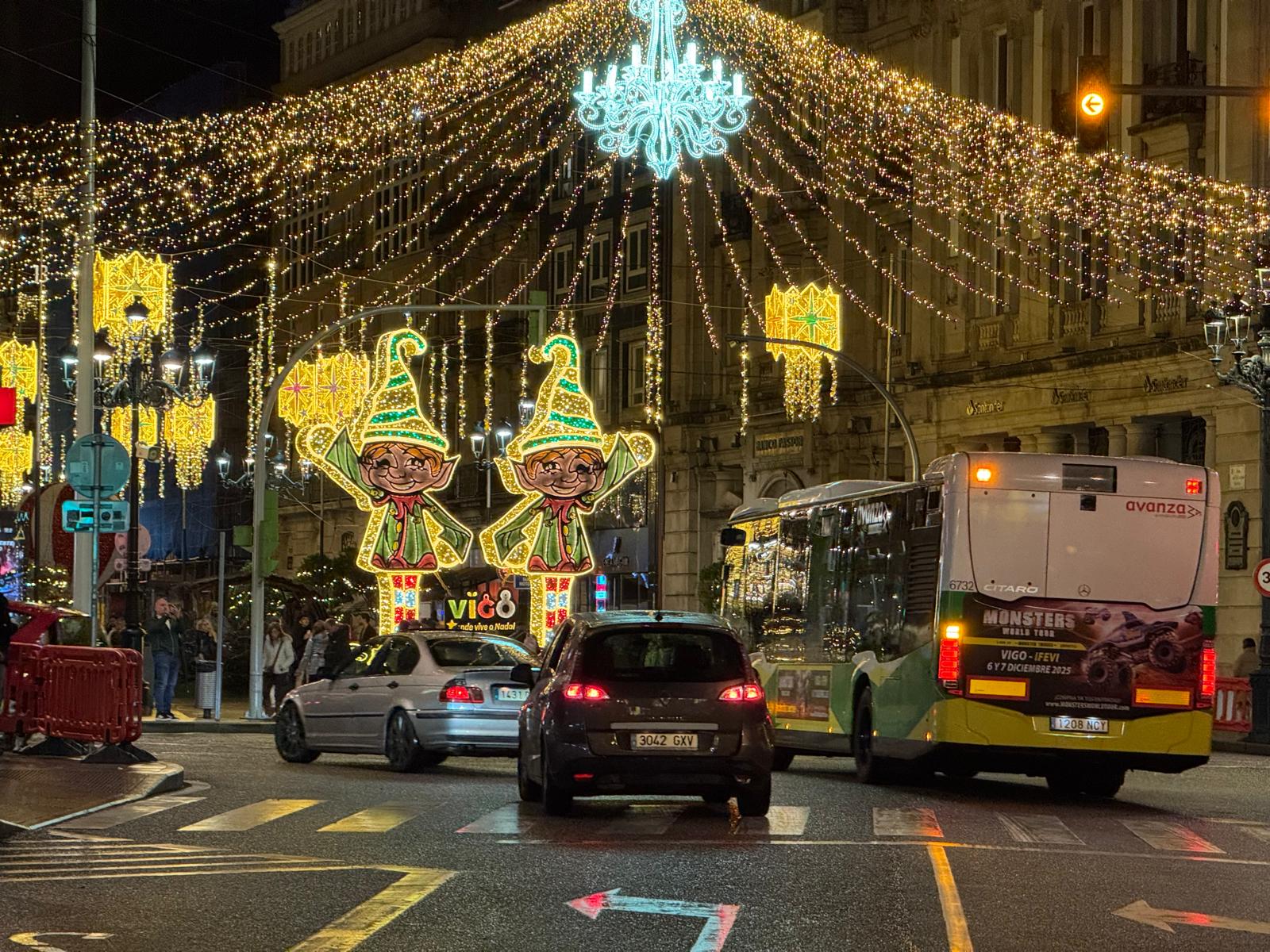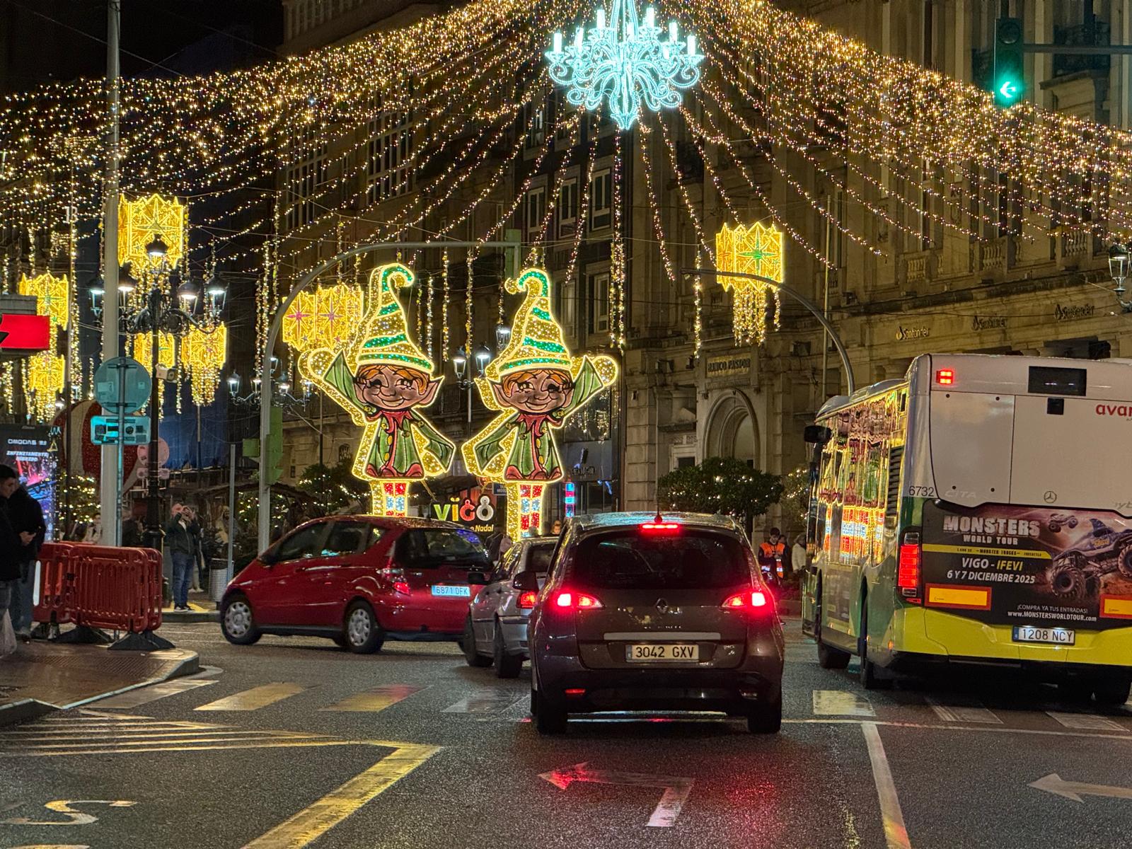Tráfico fluido, excepto por un incidente en la Avenida de Madrid, y paseos sin aglomeraciones. Así se saldaron las primeras 24 horas de la Navidad de Vigo.