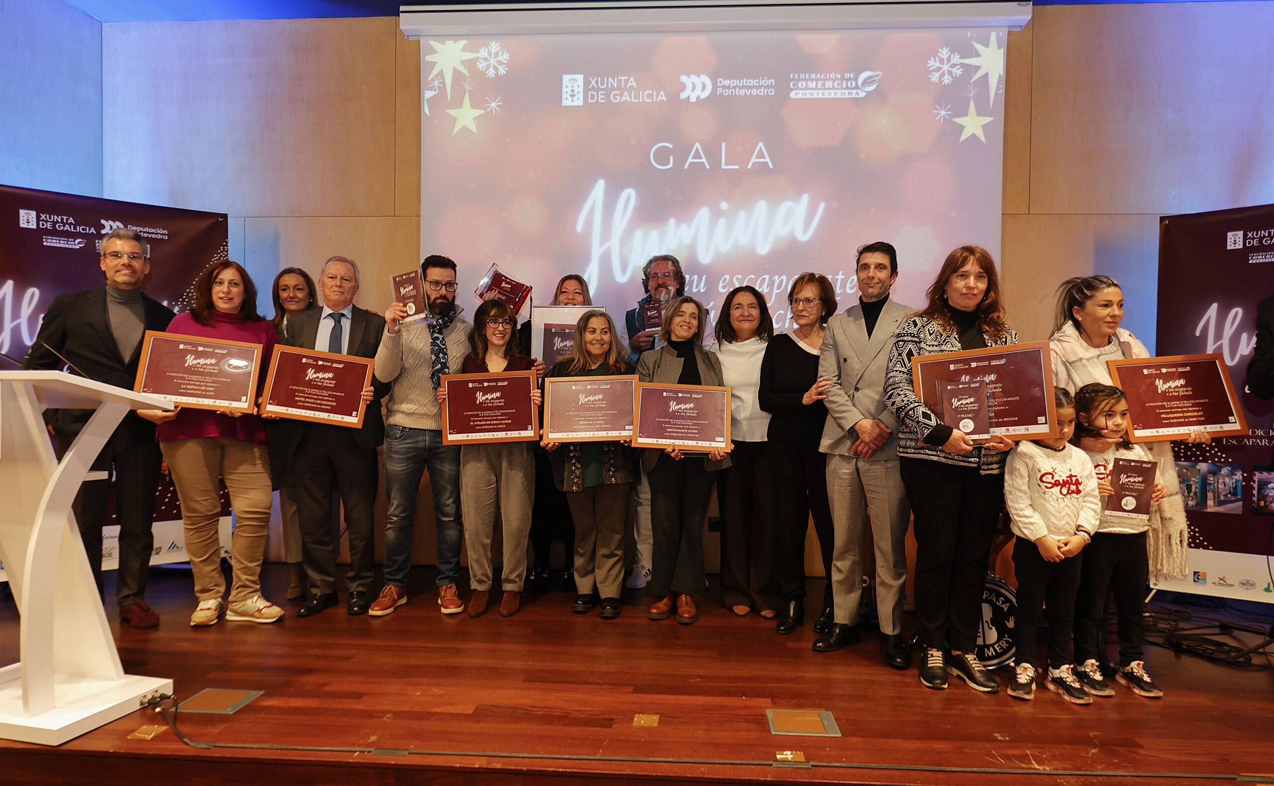 El concurso «Ilumina o teu escaparate e fachada» celebró este domingo su entrega de premios. El auditorio de la Delegación Territorial de la Xunta de Galicia en Vigo acogió la gala en la que se conocieron los mejores escaparates de la Navidad de Vigo. También hubo música en un acto en el que estuvieron presentes la delegada territorial, Ana Ortiz; la vicepresidenta de la Diputación, Luisa Sánchez, y el presidente de la Federación de Comercio, Iván Iglesias.