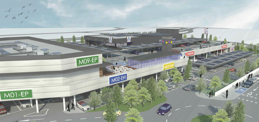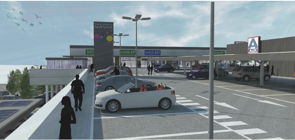 El proyecto básico propone desarrollar un establecimiento comercial colectivo con un formato de medianas superficies comerciales, agrupados en un único bloque de edificación en dos niveles. Tendrá un total de 10 parcelas destinadas exclusivamente a uso comercial, estando dos de ellas ya claramente delimitadas para el sector alimentación y que, según el proyecto, serán un Eroski y un Aldi que ocuparán, ambos, más de 5.000 m2 de superficie. El resto, previsiblemente serán para equipamiento de la persona, del hogar, mascotas, etc… de forma similar al parque comercial Meixoeiro.