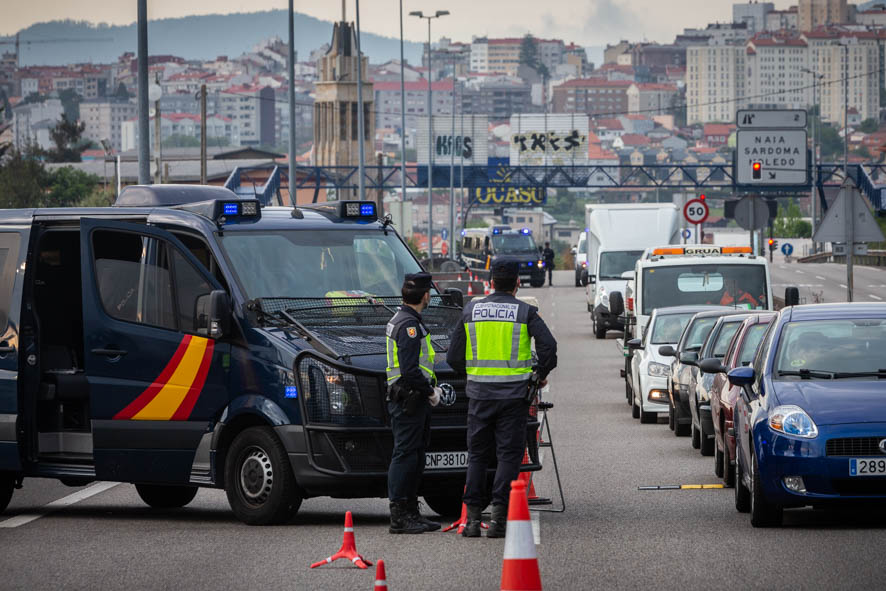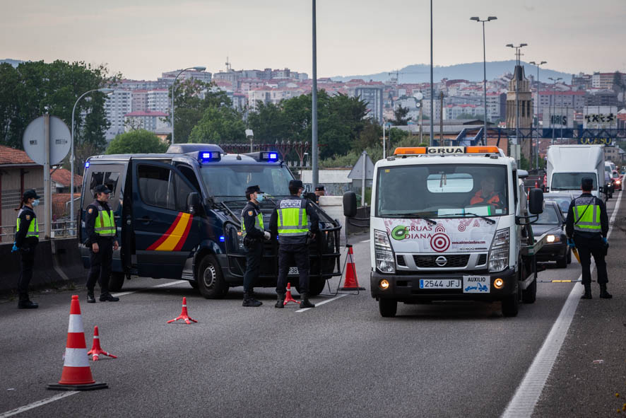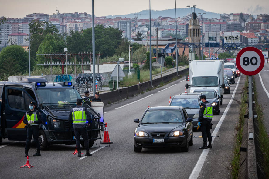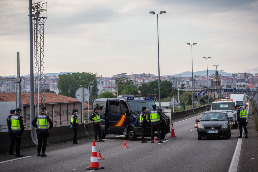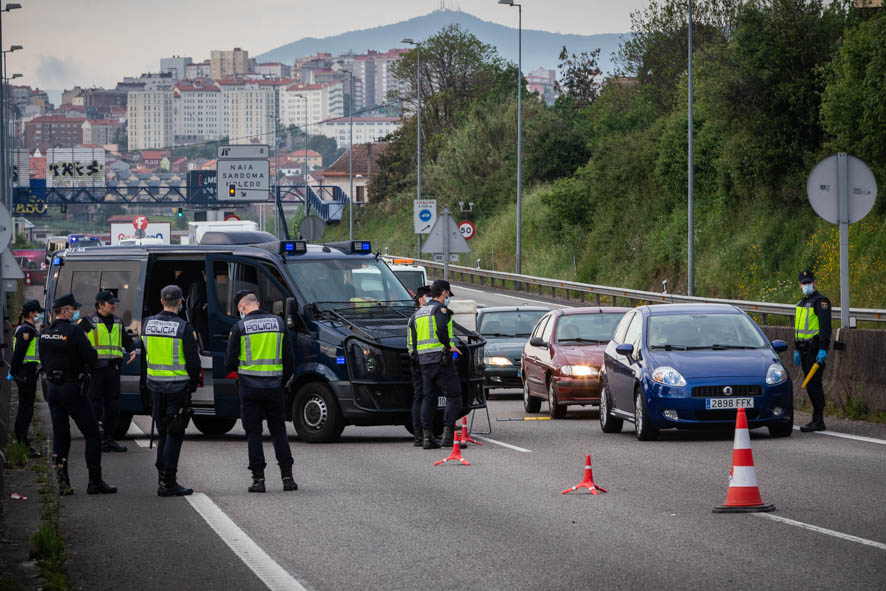 Avenida de Madrid, Puxeiros o carretera de Baiona fueron algunos de los puntos en los que la Policía revisó vehículos y autorizaciones para desplazarse por motivos justificados en base a las normas del decreto.
