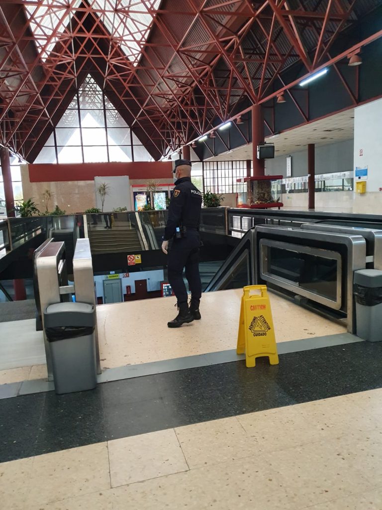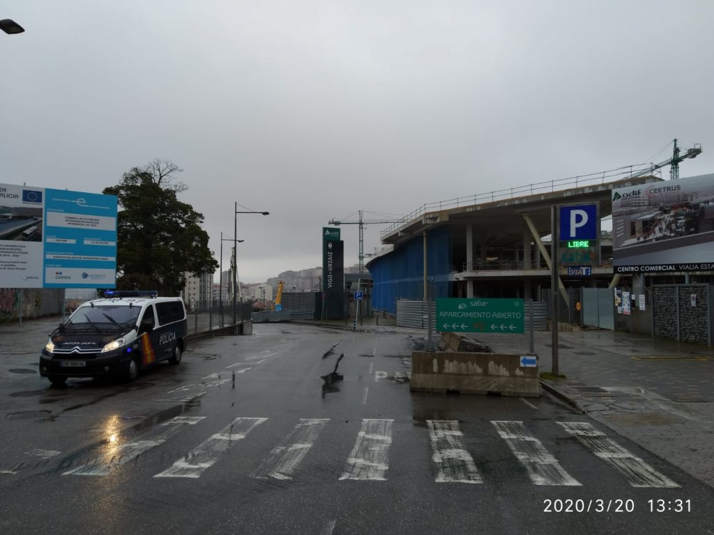 Agentes de la Policía Nacional patrullan las calles de Vigo, aeropuerto, estaciones de autobuses y de Renfe en colaboración con Policía Local y Brilat. «Pretendemos poner un poco de cordura a quienes no son solidarios y salen a pasear olvidado el daño que pueden hacer a los más vulnerables», señala la Comisaría en un comunicado.