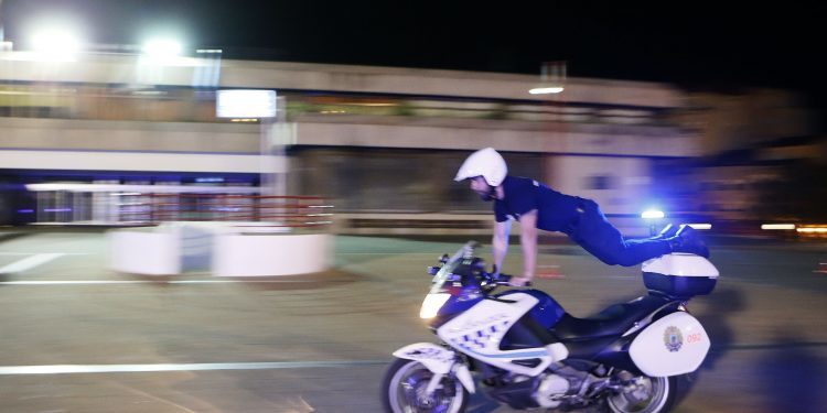 Quince motos con sus rotativos circulando por la Praza do Rei a medianoche. No se trataba de una operación policial ni de un servicio de emergencia, sino que era la Unidad Motorizada de Exhibición (Umex) de la Policía Local ensayando los ejercicios que todos los vigueses podrán disfrutar el próximo viernes en el mismo escenario con motivo del Día de la Policía, o lo que es lo mismo el día de su patrona, Santa Rita.