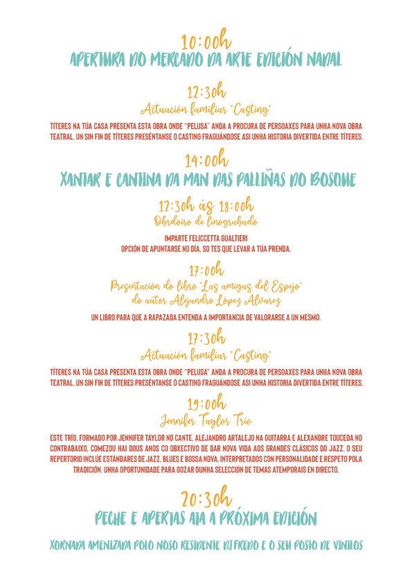 • Actuaciones Familiares: La jornada contará con dos funciones de títeres, «Casting» de Títeres na Túa Casa, a las 12:30h y 17:30h.