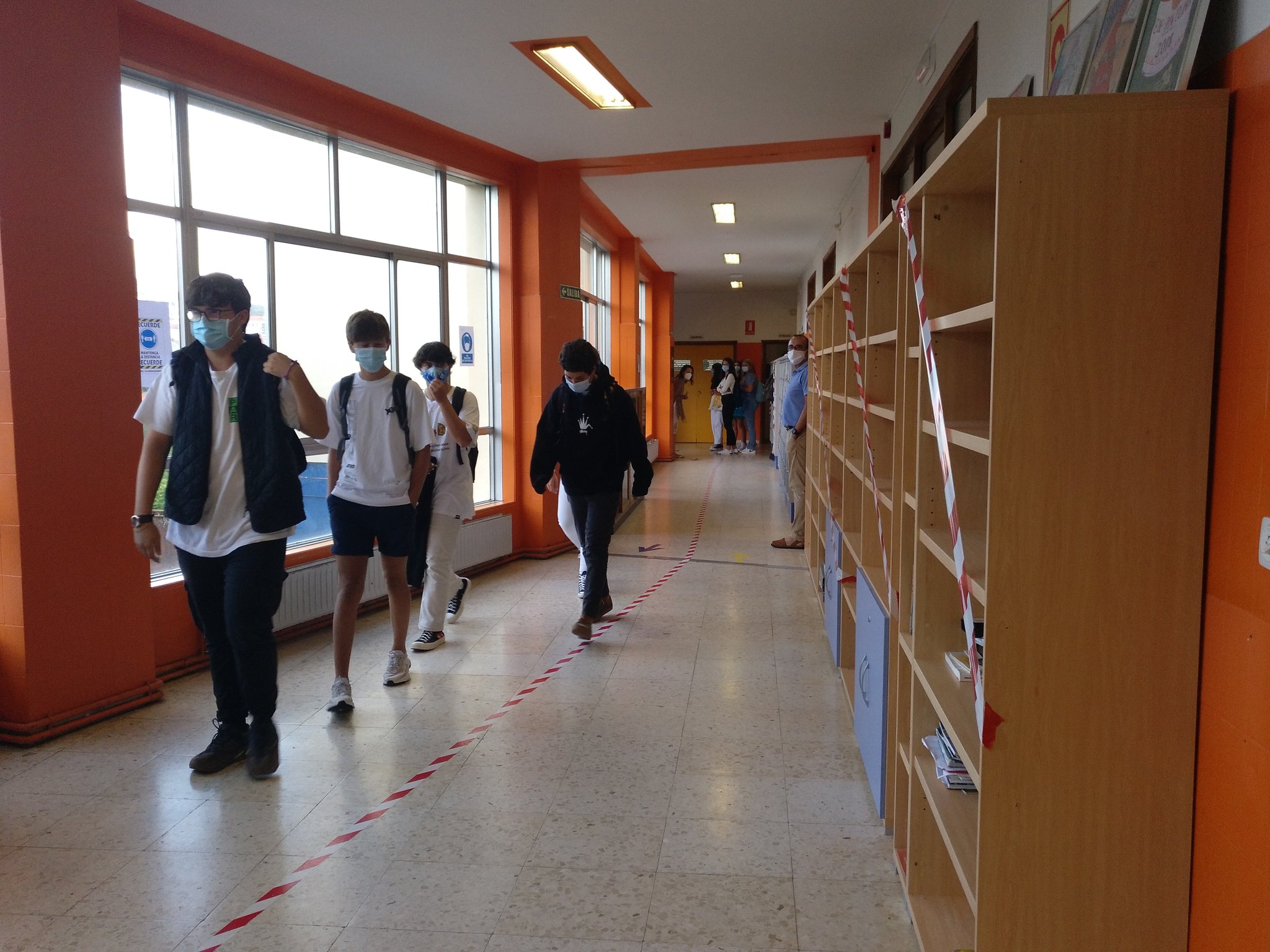 Seis meses después, las clases de Bachillerato del Colegio Apóstol de Vigo vuelven a acoger alumnos. En torno a 200 estudiantes de primero y segundo -25 por sección- han regresado este viernes a las aulas, adelantándose así al inicio estándar marcado por la Consellería de Educación. La semana pasada se acordó posponer el comienzo del curso, pero se daba libertad a los centros para adaptar ese inicio a sus criterios o necesidades.