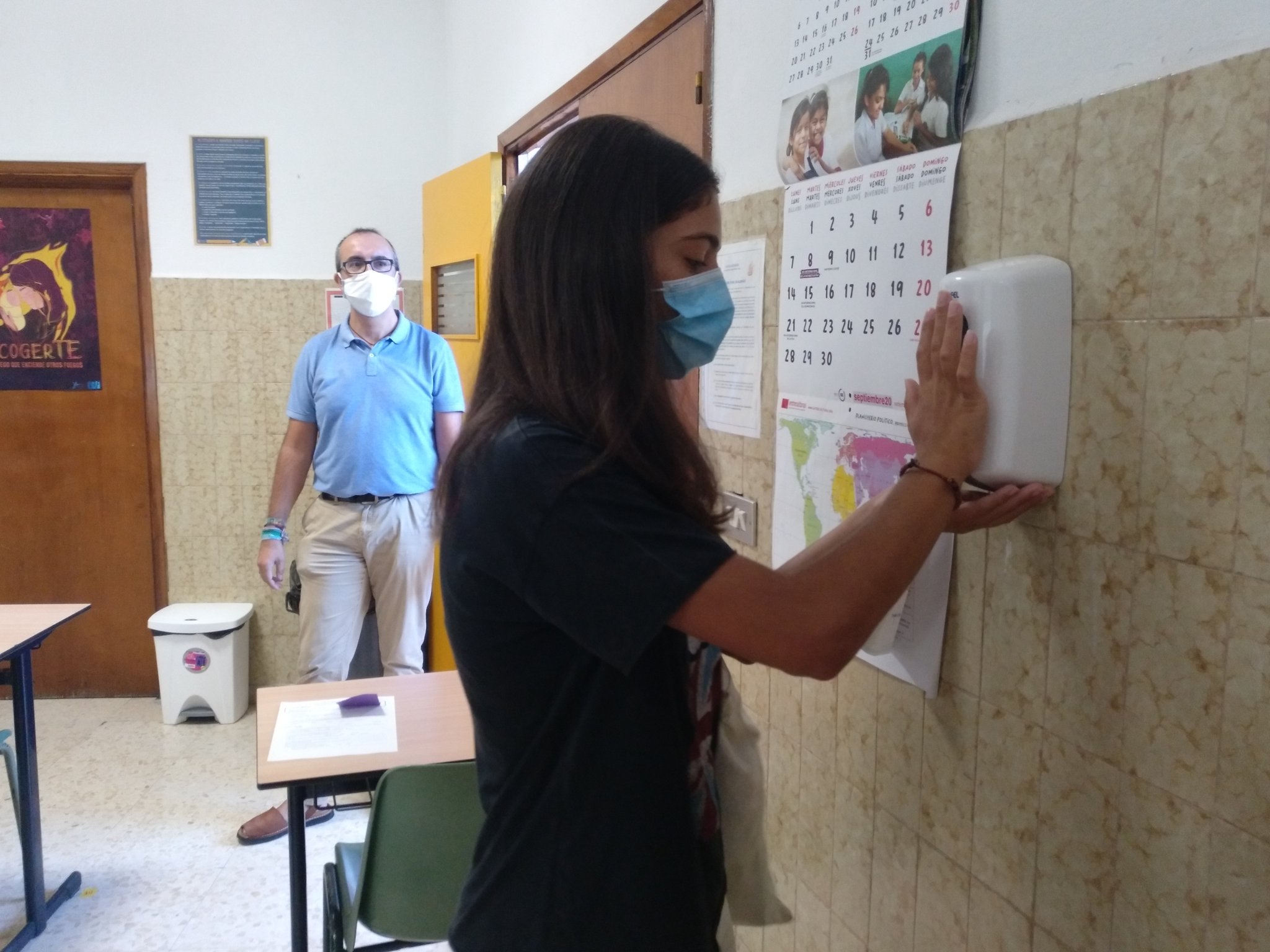 El regreso se ha producido con total normalidad, dentro de la situación excepcional que se vive. Con muchos dispensadores de gel hidroalcohólico repartidos por las instalaciones y las caras cubiertas por mascarillas, los estudiantes han retomado una presencialidad que no se daba desde marzo.
