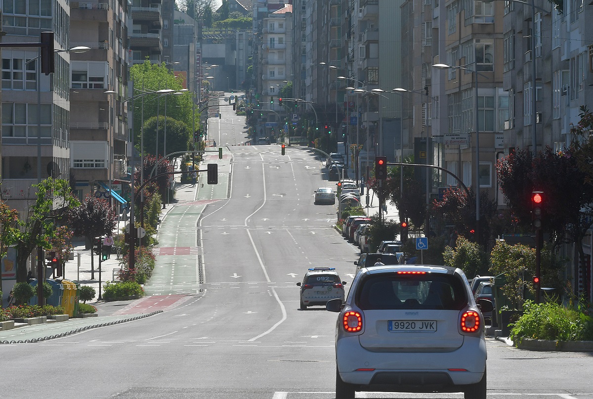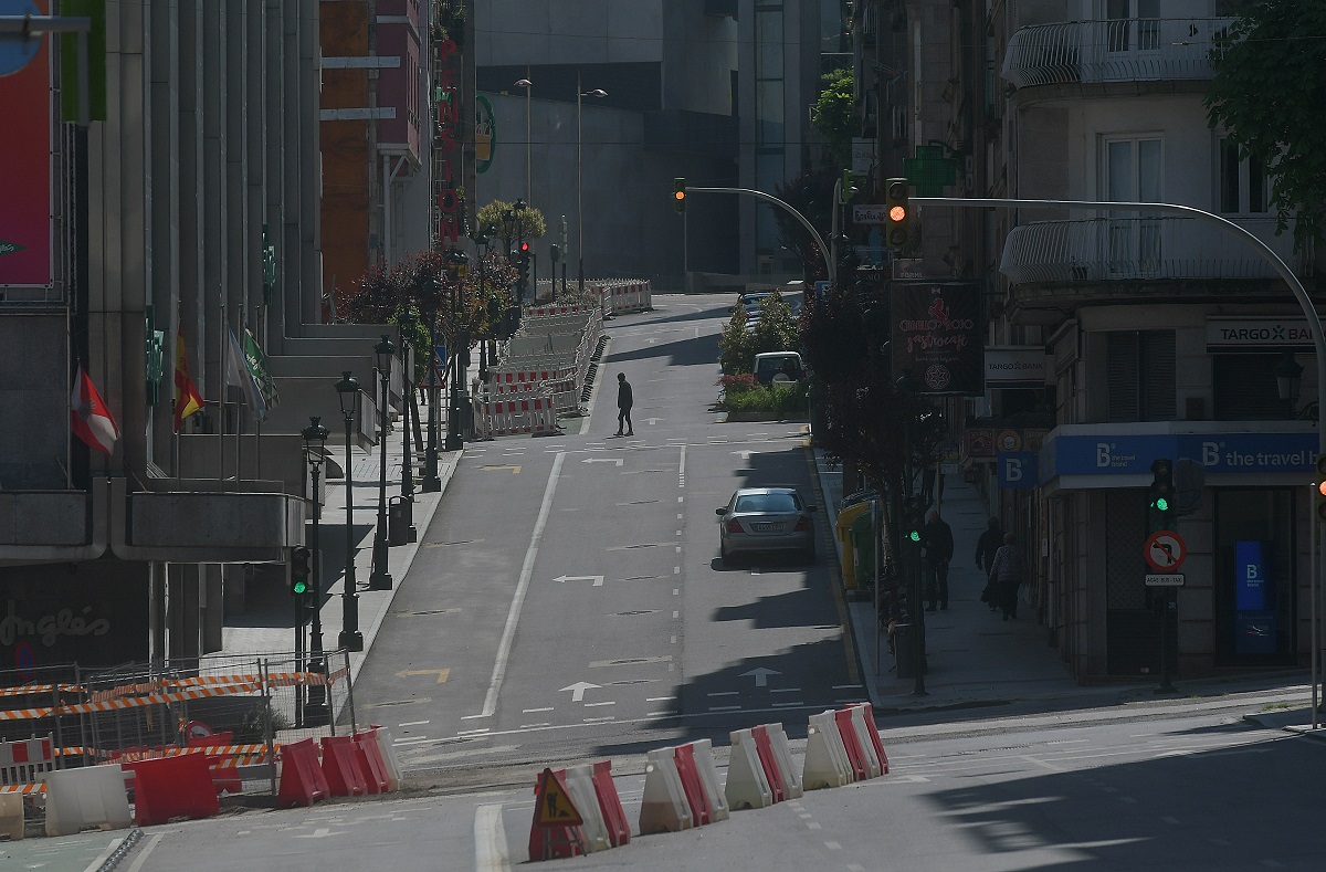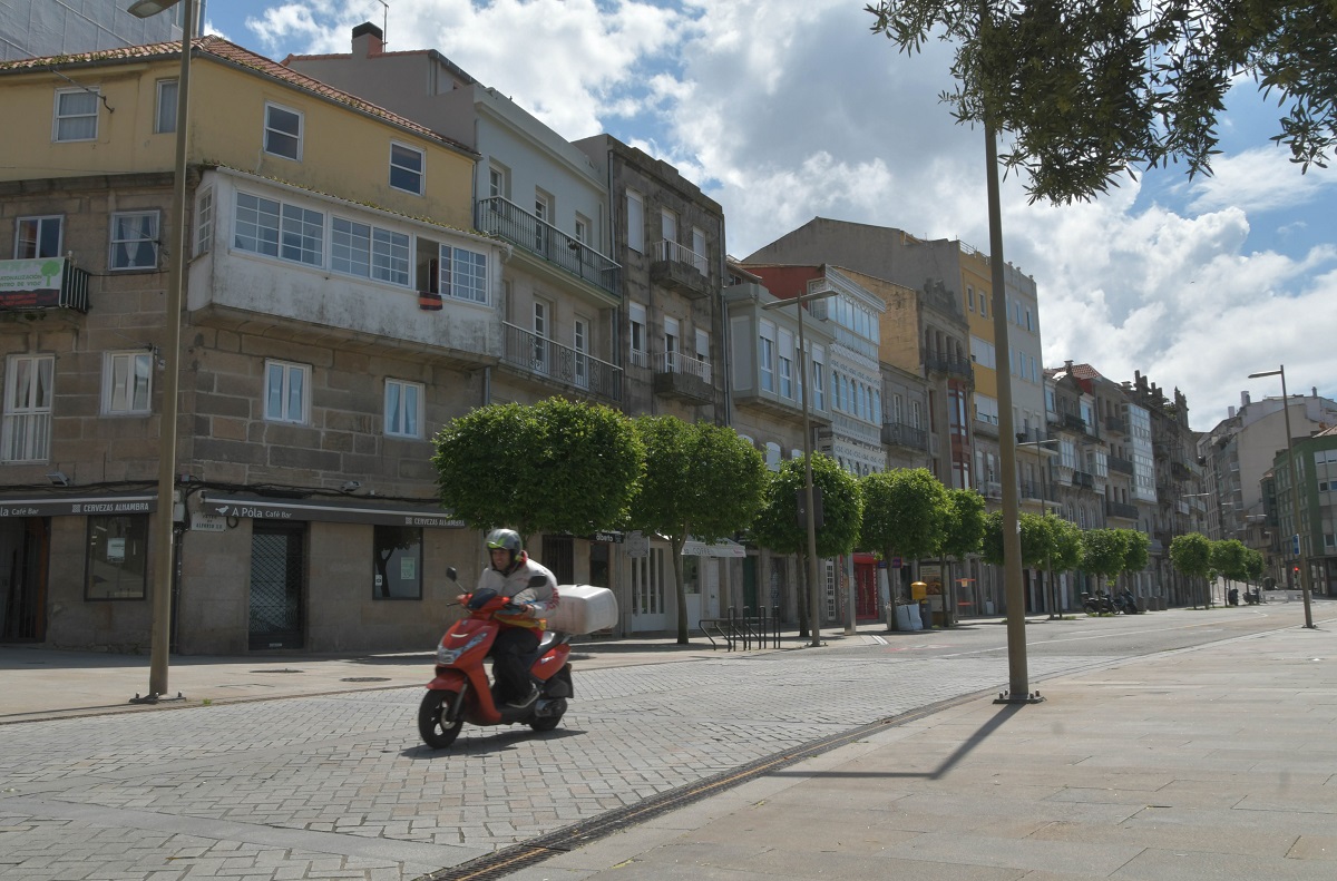 De norte a sur y de este a oeste. Desde el Paseo de Alfonso hasta Urzaiz y el Calvario. Vigo vivió su quinto domingo de confinamiento a causa del Covid-19 y sus calles mostraron de nuevo el silencio más absoluto.