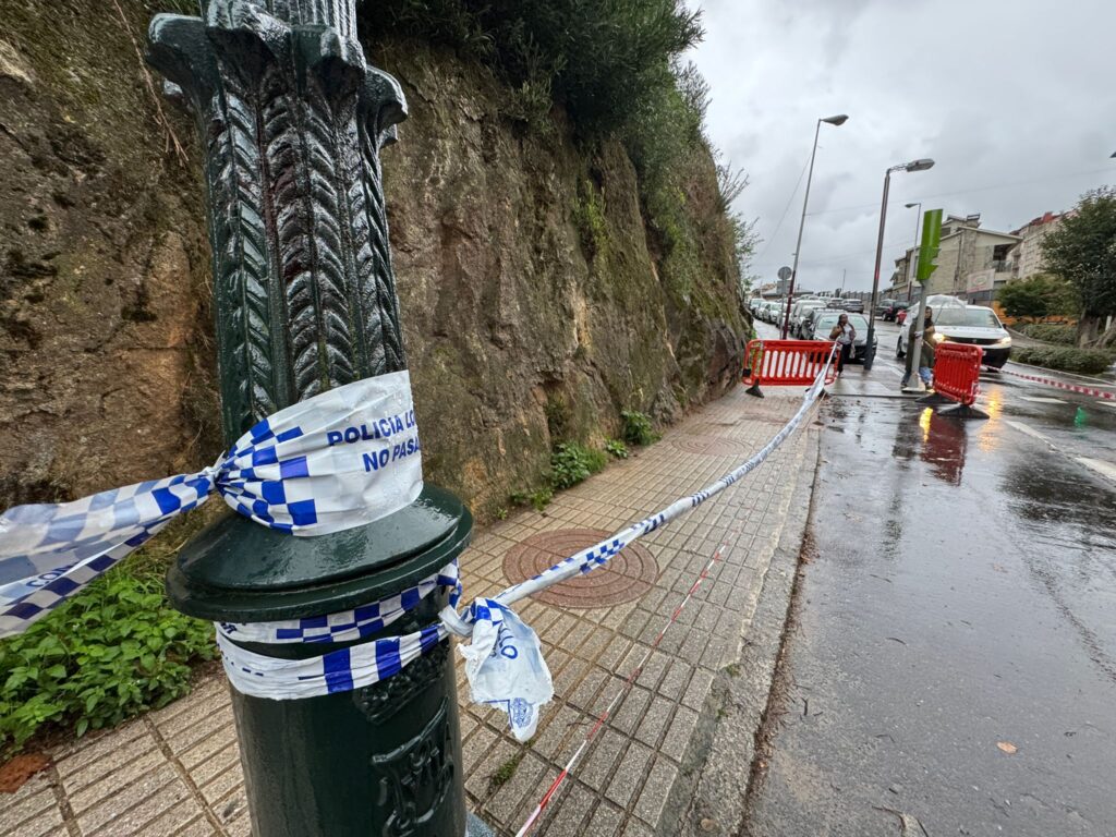Por la mañana, la Policía Local tuvo que acordonar la zona. Además de la luces caídas, un ligero desprendimiento de tierra de O Castro cayó en la acera. Nada grave, fundamentalmente porque nadie resultó herido, claro.