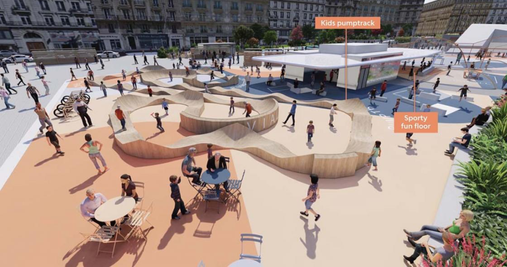 Así, habrá canastas de baloncesto 3×3, una mini pista de fútbol para adultos, mesas de teqball, un área deportiva destinada a los más pequeños, un área de skate, un parque de patinaje y un halfpipe.