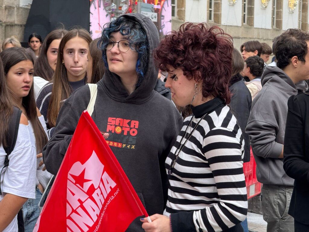 El Sindicato de Estudiantes salió este martes a las calles de Vigo y del resto del país en una jornada de huelga estudiantil en ESO, Bachillerato y FP contra el acoso escolar y los discursos de odio en las aulas. El objetivo final es el de exigir «mayor inversión» en la educación pública para la atención de la salud mental del alumnado.