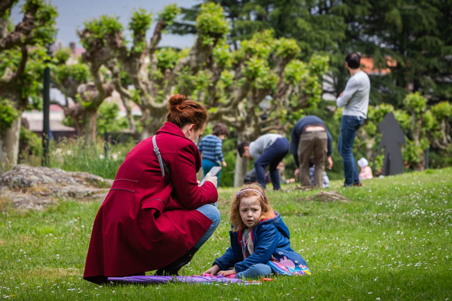 Caballero insistió en que los niños pueden salir «pero siempre a distancia, siempre sin jugar con otro niños, adultos pegados a sus hijos». El monte del Castro, Bouzas o el Náutico fueron algunos de los sitios escogidos por los padres para llevar a sus pequeñas en esta jornada de primera salida a la calle.