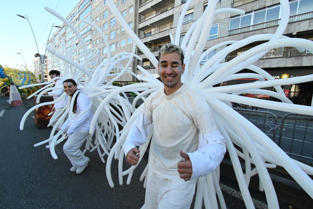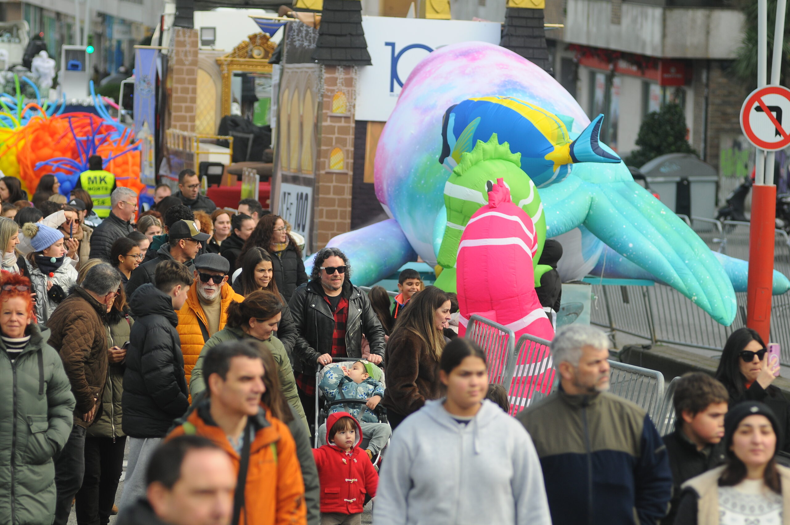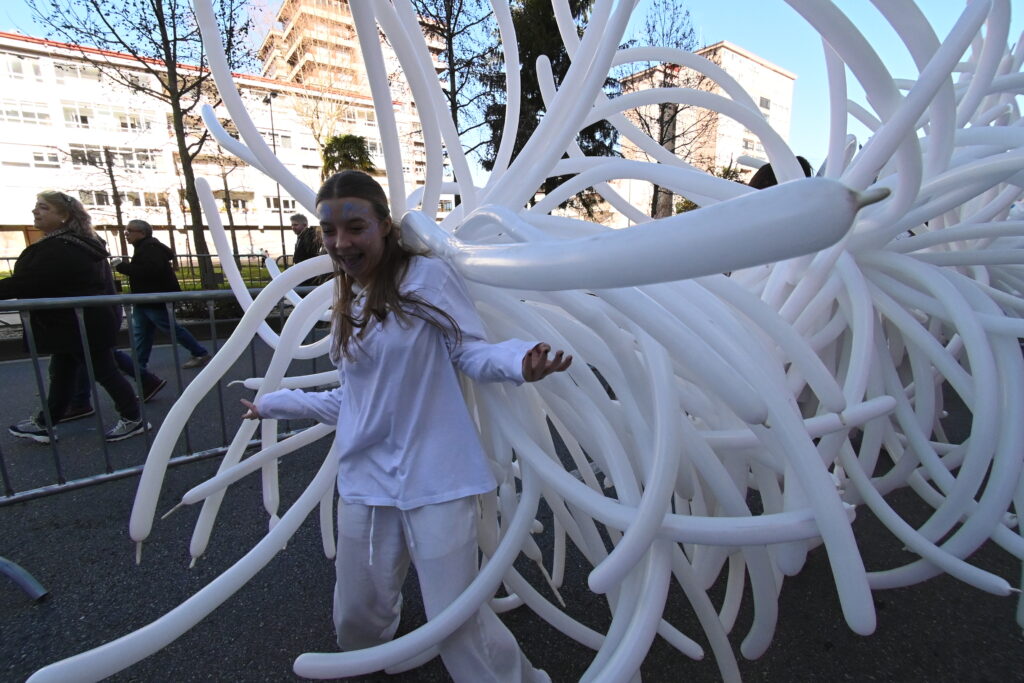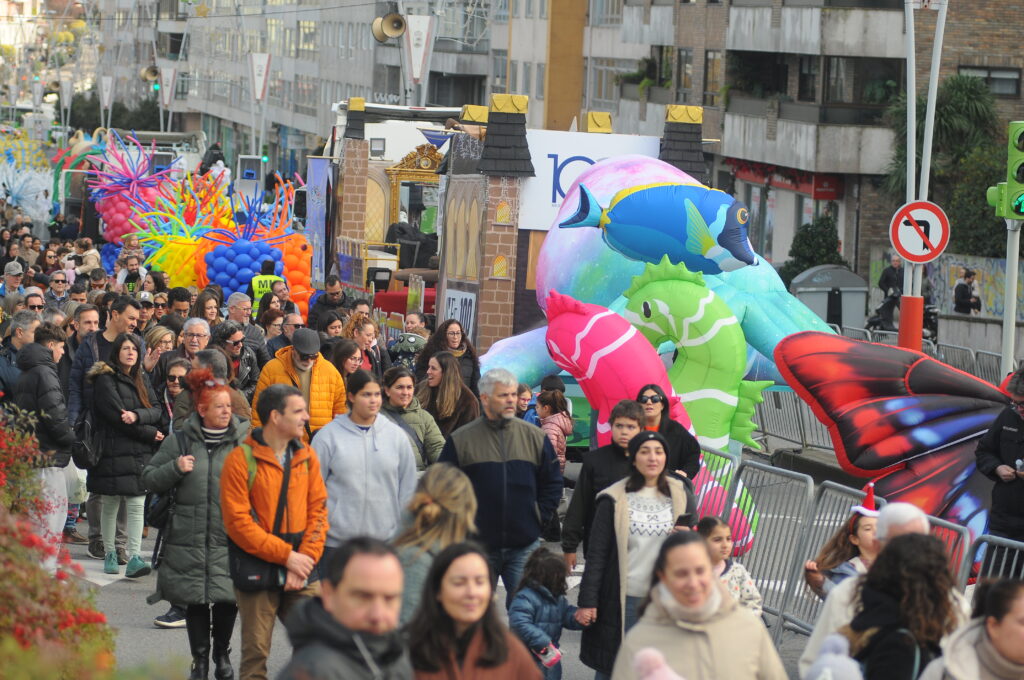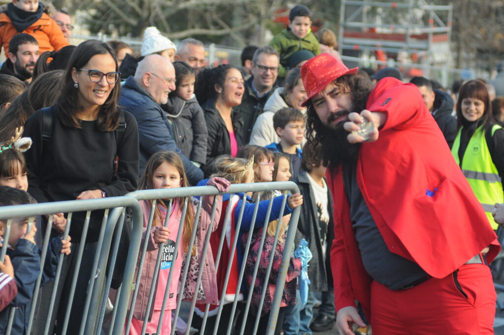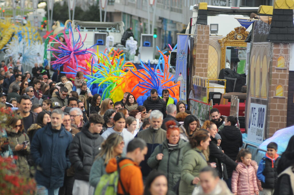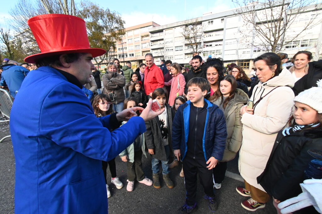 En estos primeros momentos hubo algunas colas durante el trayecto que cada familia tenía que hacer a pie a lo largo de la vía municipal pero todo lo solventó la «magia y fantasía» de la caravana organizada por el Concello para esta campaña de Navidad 2025-2026.