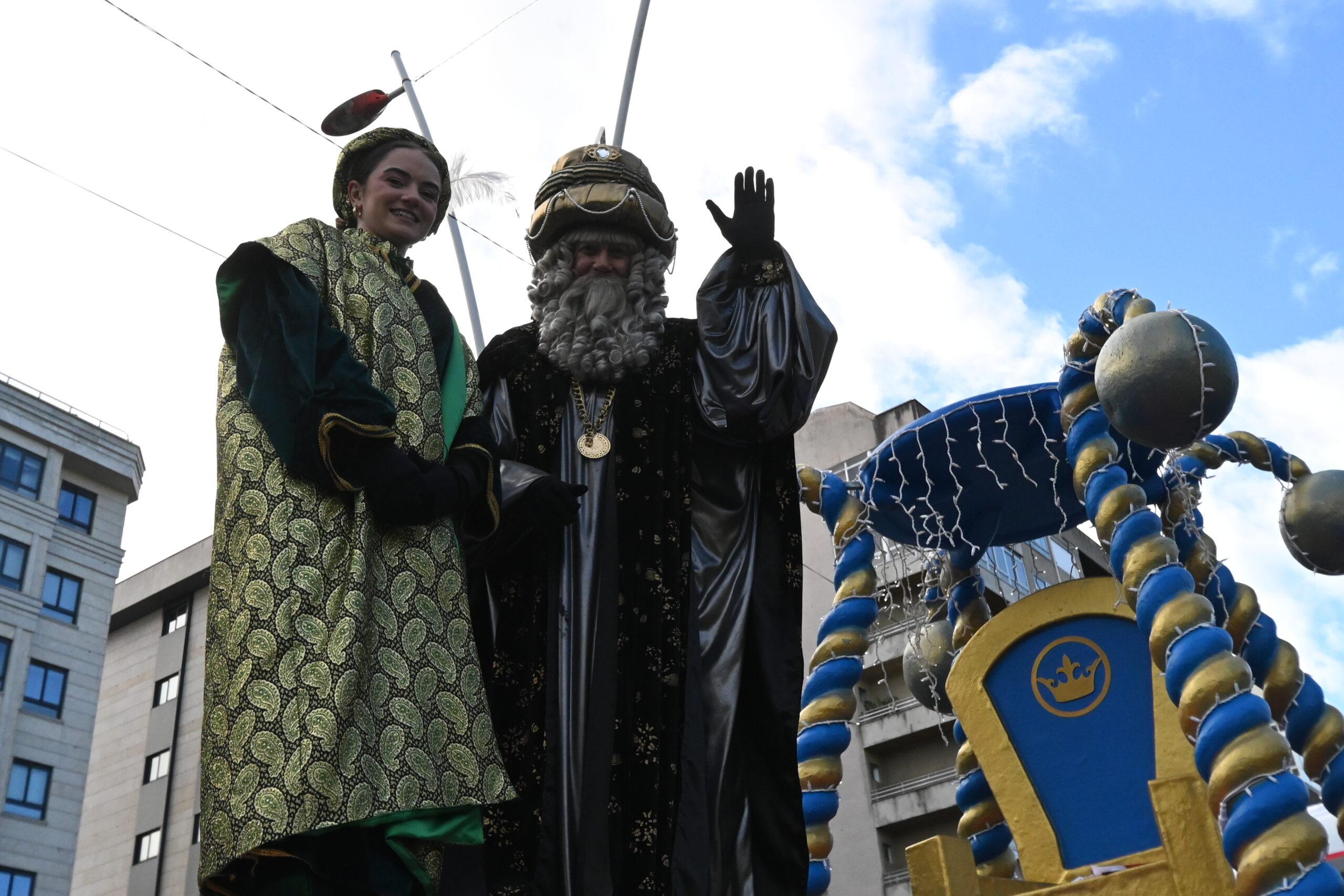 Melchor, Gaspar y Baltasar se subieron a sus carrozas esta mañana a las 11:00 horas para disfrute de pequeños y mayores, que se acercaron hasta la Avenida de Castelao este 5 de enero para vivir un año más la modalidad estática de la comitiva que, a partir de las 18:00 horas, pasará al tradicional recorrido por las calles de la ciudad para llegar por Avenida de Camelias hasta Praza do Rei.