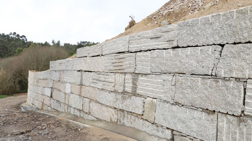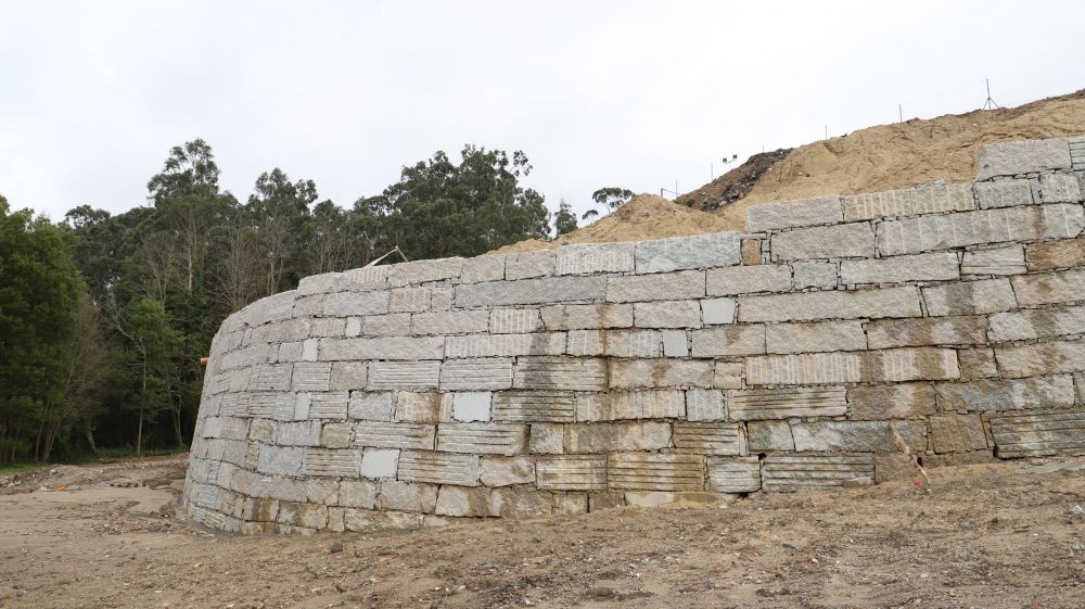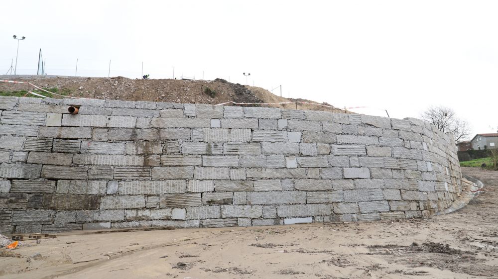 En total, la actuación se elevó hasta los casi 800.000 euros para ejecutar la construcción de un muro de contención de 7 metros de altura que bordea toda la longitud del campo de fútbol de As Relfas, donde juegan muchos clubes deportivos.