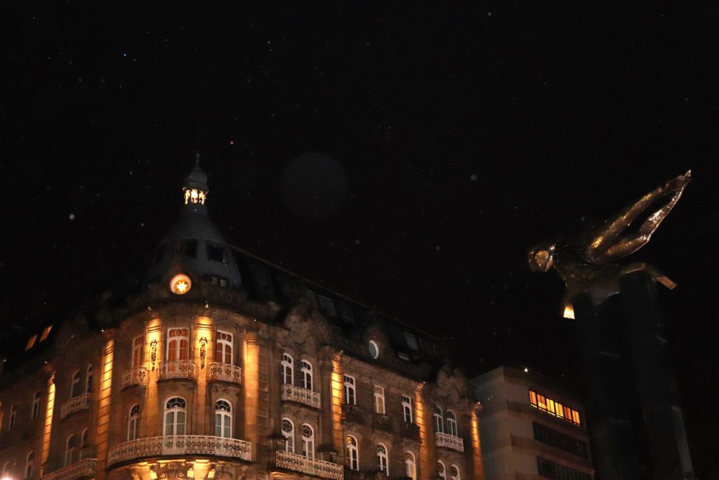 Es sin duda uno de los edificios más conocidos de Vigo. Es una obra de arte, tanto por su elegancia como por su riqueza arquitectónica. Y además ocupa una situación privilegiada y es historia de la ciudad. El Edificio Moderno, antes Hotel Moderno, quedó esta noche iluminado para conmemorar el centenario del fallecimiento de su creador. El genial Michel Pacewicz (Chatou, 1843 – Vigo, 1921) es el arquitecto franco-polaco que diseñó algunos de los edificios más notables de la urbe. En la Porta do Sol de Vigo se levanta una obra de arte de Pacewicz que desde hoy recibe la luz que se merece.