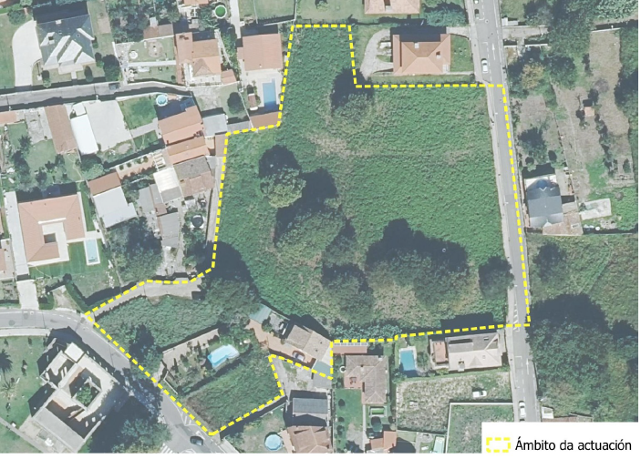 O ámbito concreto linda al norte con fincas urbanas y viviendas unifamiliares, al sur con la Avenida Europa, al este con la VG-20, y al oeste con la propia rúa Castaña.
