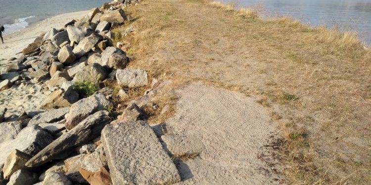 Alertan ademais de que a rampla de acceso esta afundida, a torre de vixilancia atópase en mal estado e o paseo marítimo non ten firme en moitos tramos